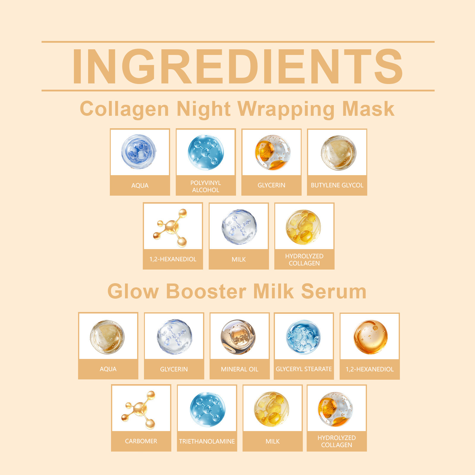 Product Dimensions: Collagen Night Care Mask: 6.3 × 4 × 12.9 cm; Radiant Milk Serum: 2.3 × 2.3 × 15 cm
