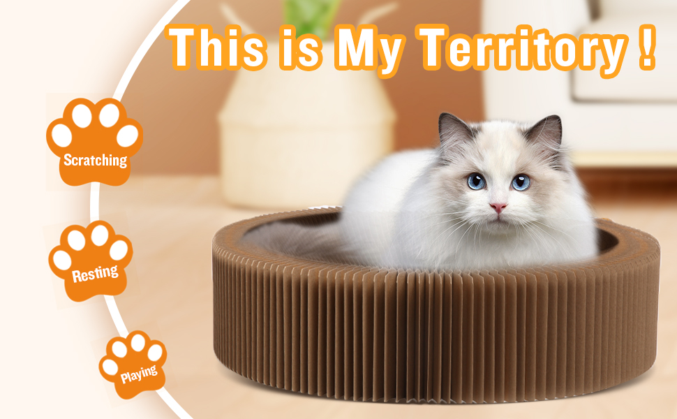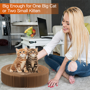 Collapsible Cat Scratcher Lounge Bed Cardboard Cat Bed, Corrugated Pet Scratcher Pad Round Cat Scratching Bed Nest For Indoor Big Large Kitty Kitten Cats