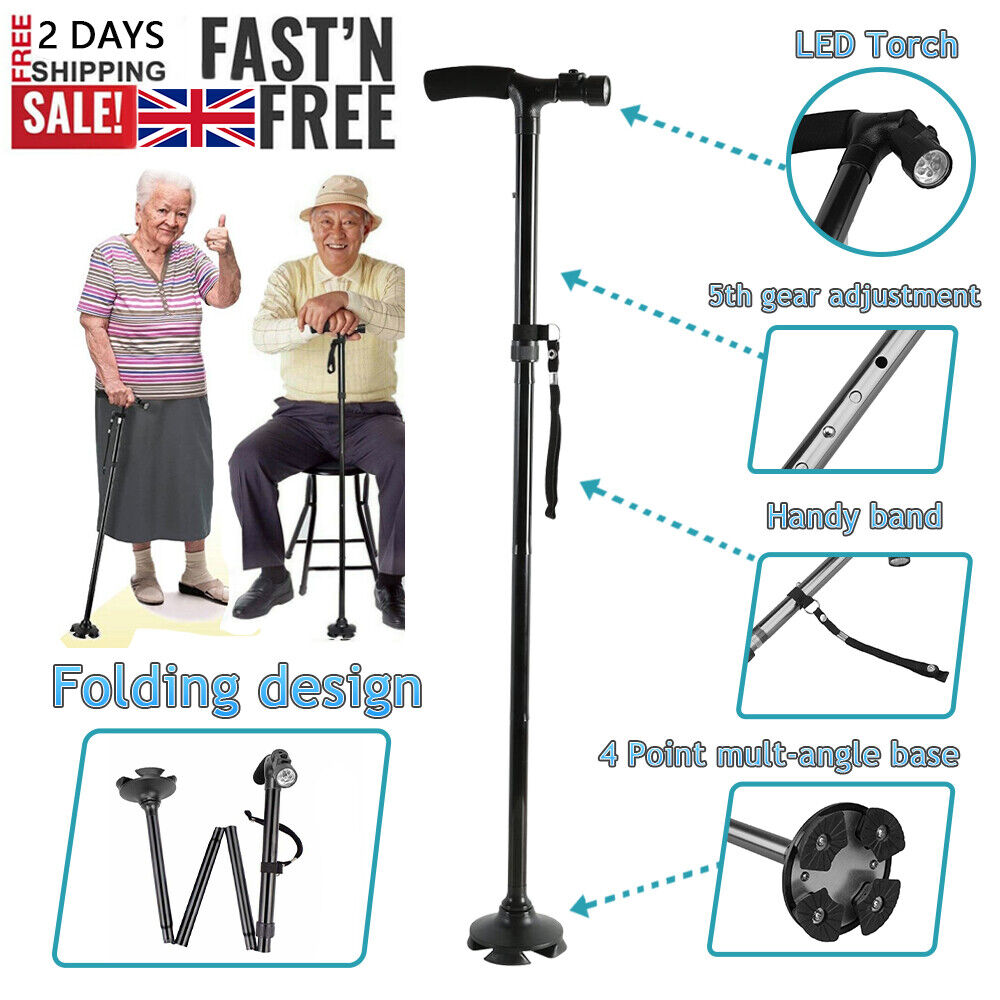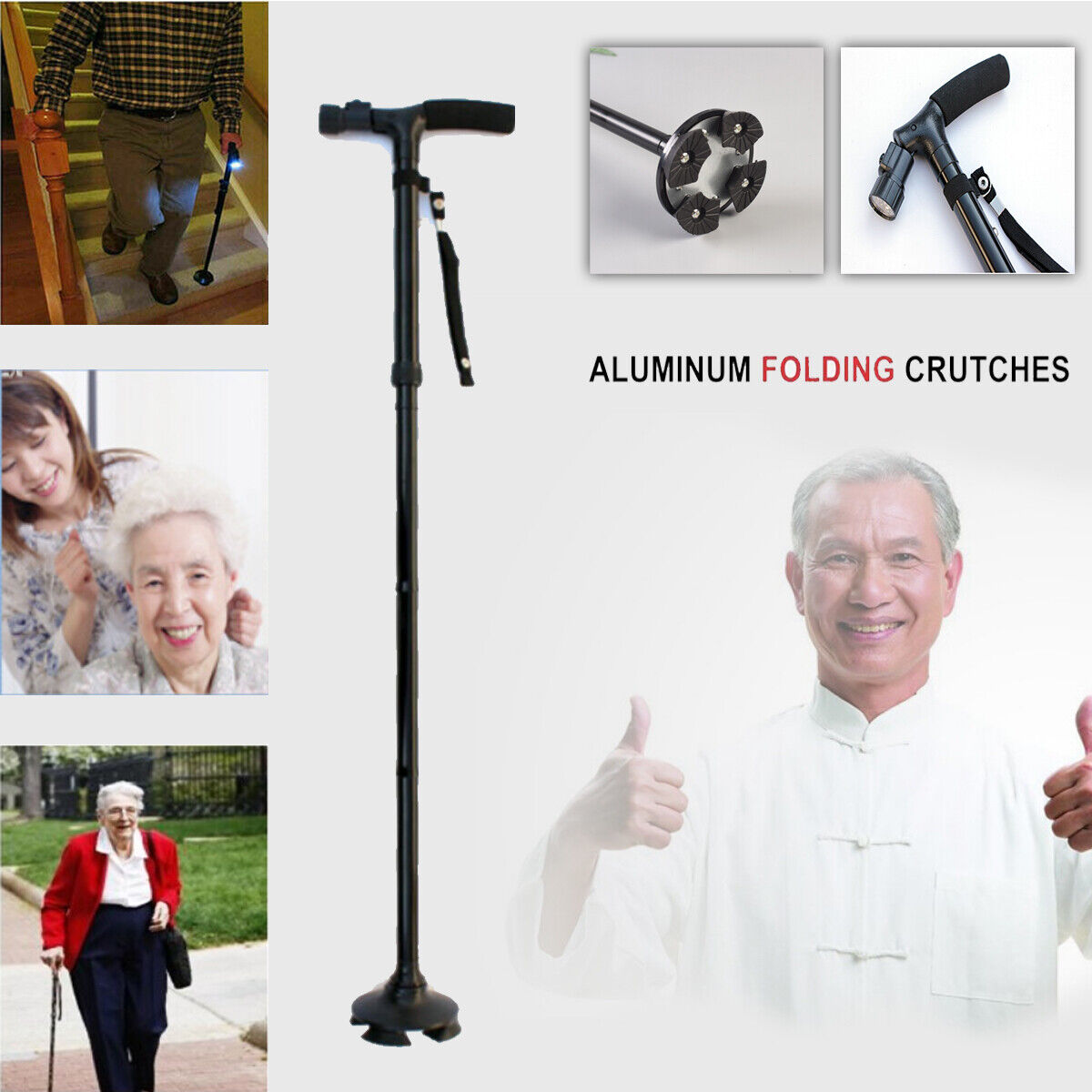 Collapsible Safety LED Walking Stick Adjustable Travel Hiking Cane Trekking Pole