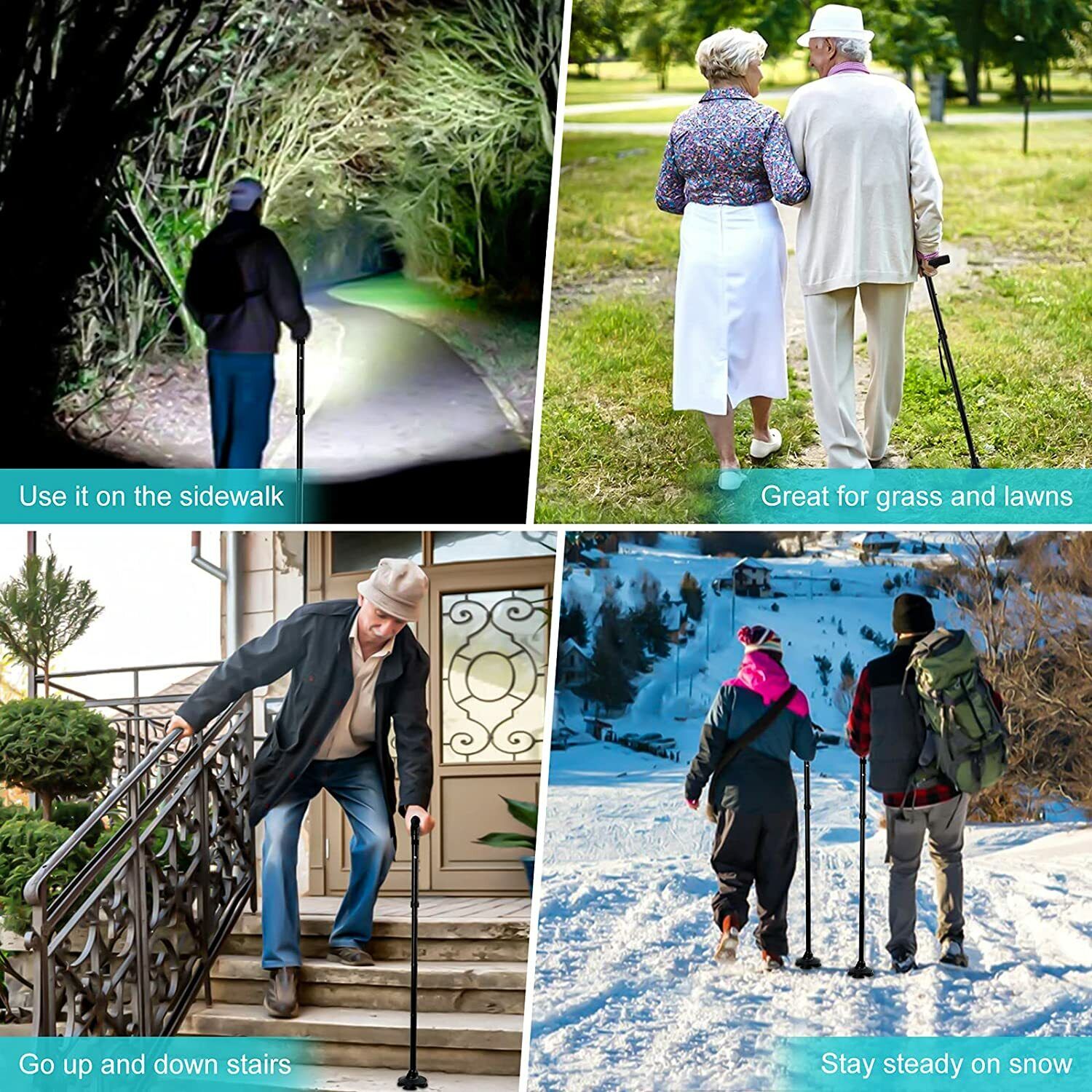 The LED Folding Walking Cane is versatile and easy to use in the darkest and bumpy places with its angled lighting and strong grip and build.