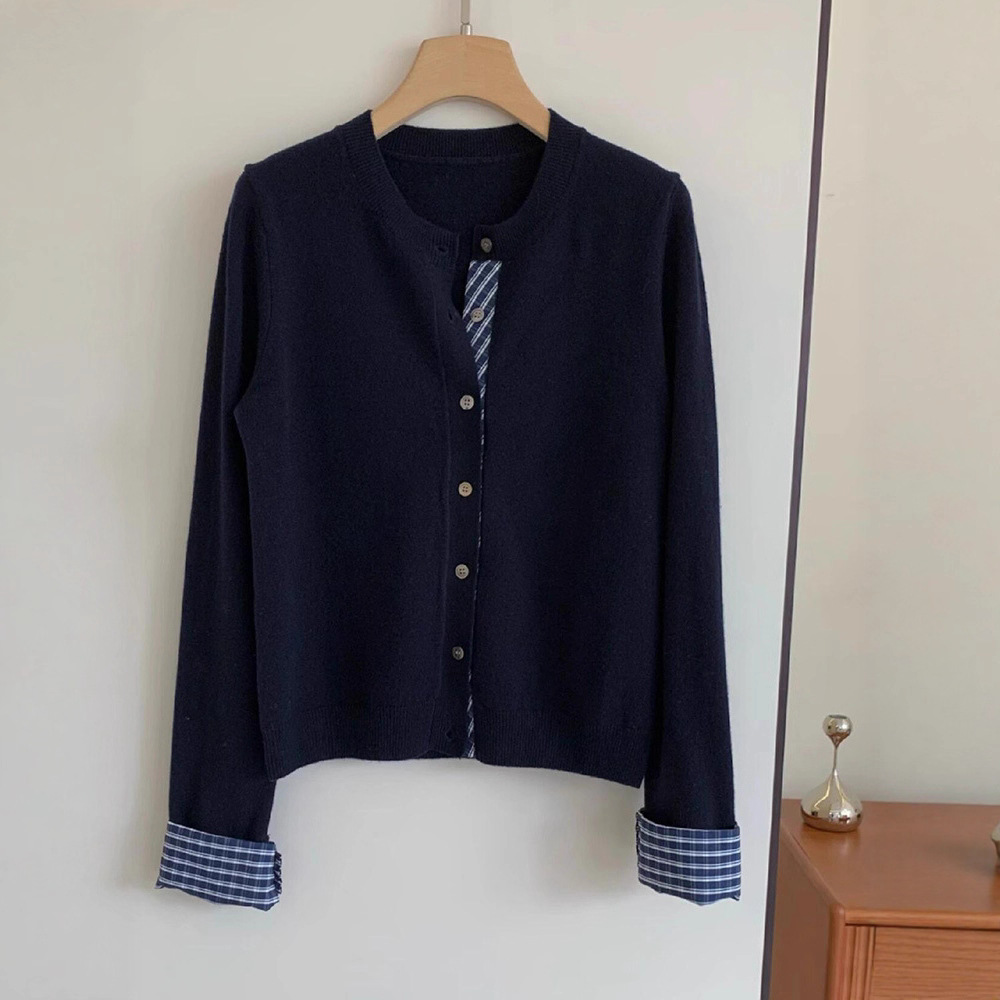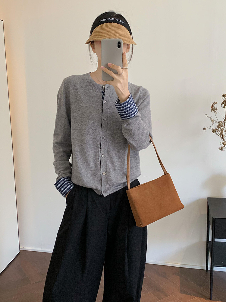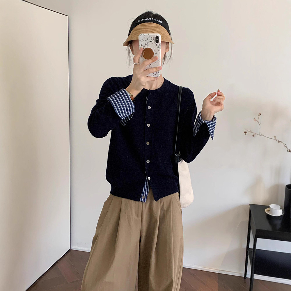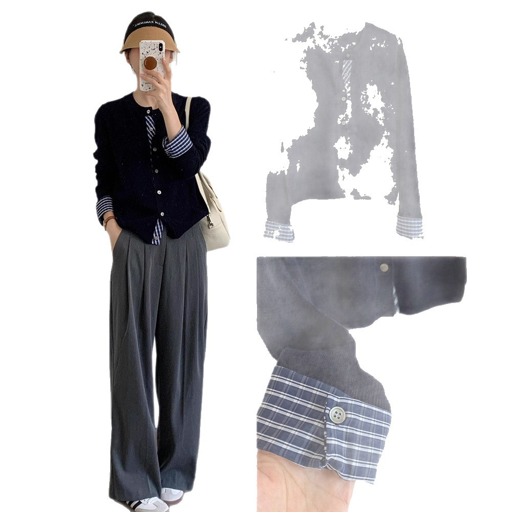 College Retro Style Fake Two-piece Knitted Cardigan Base Women's Sweater Coat