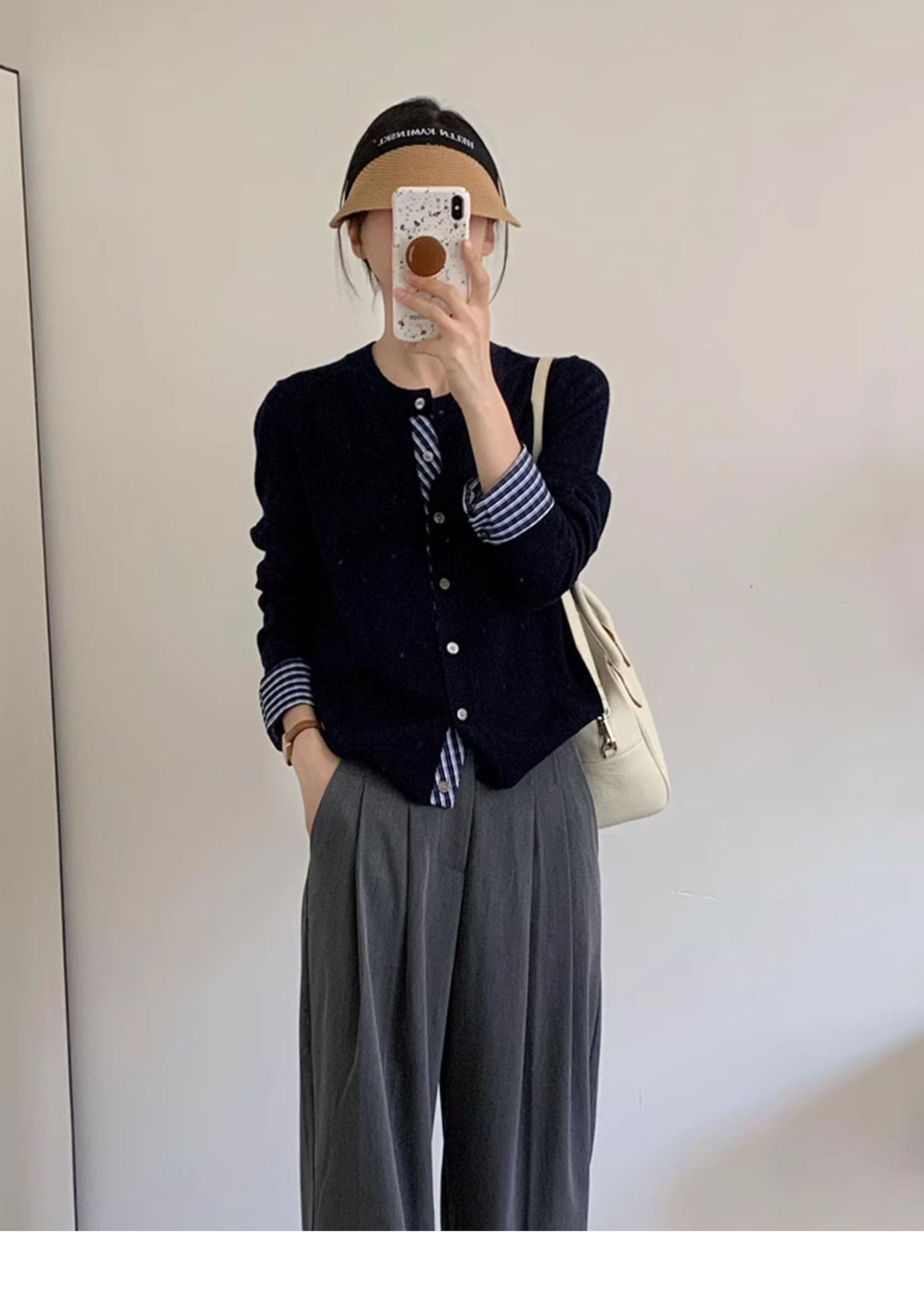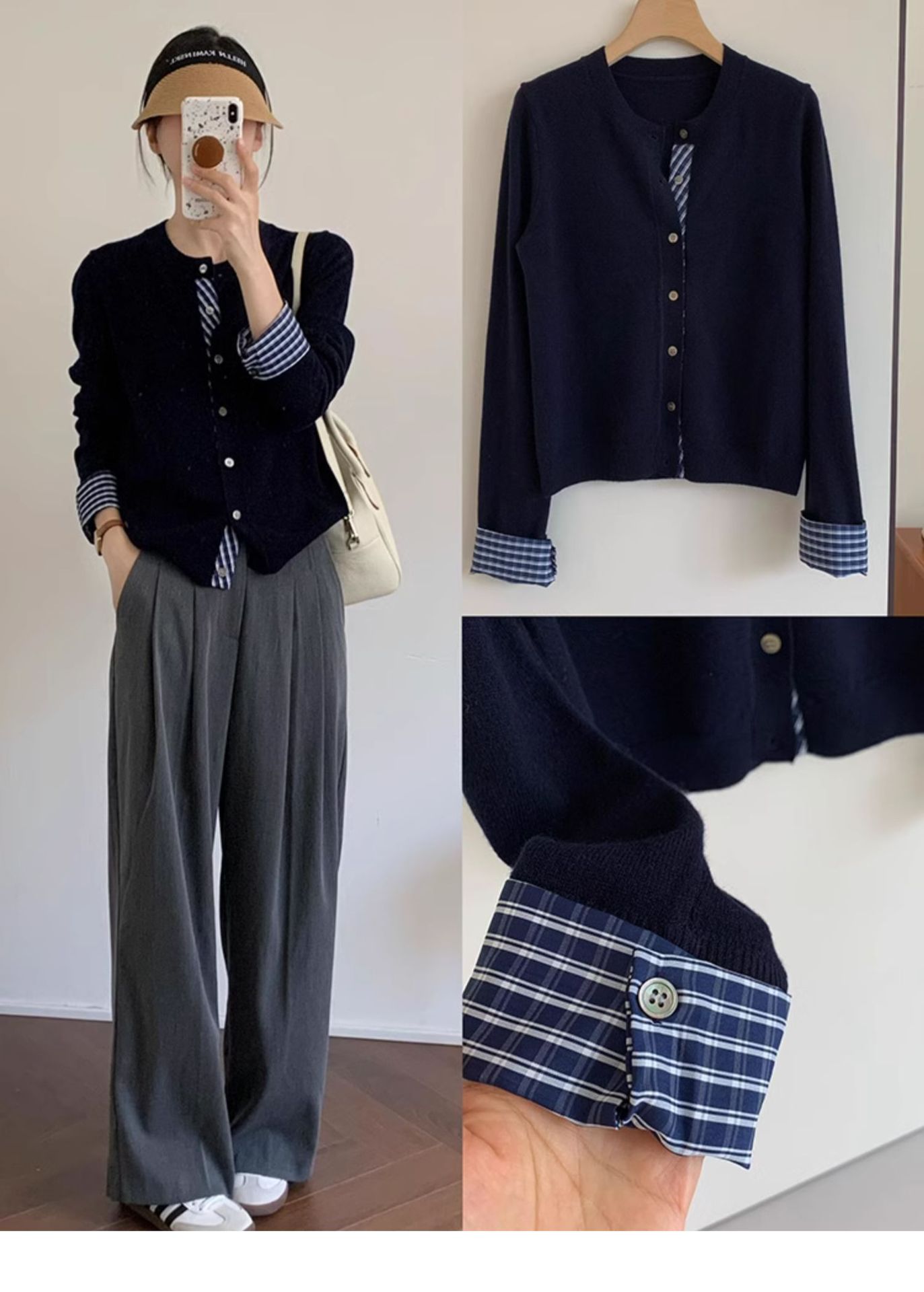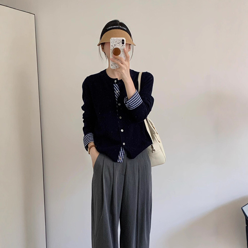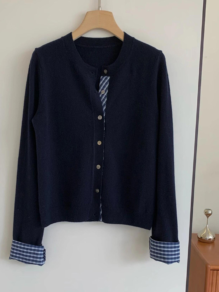 College Retro Style Fake Two-piece Knitted Cardigan Base Women's Sweater Coat