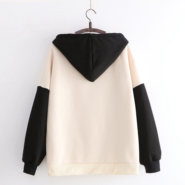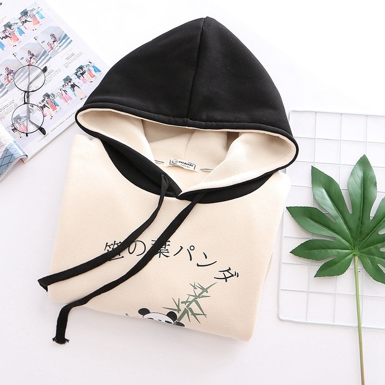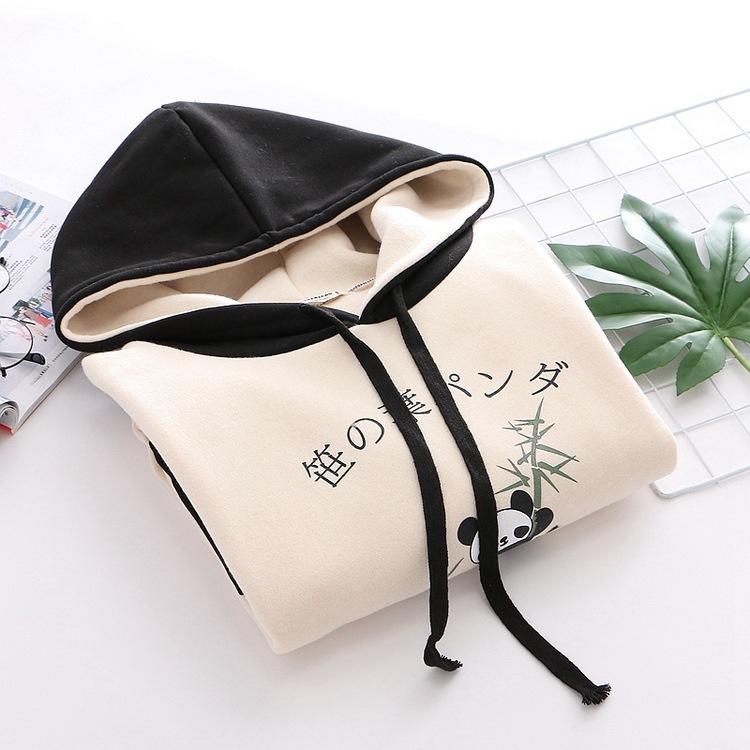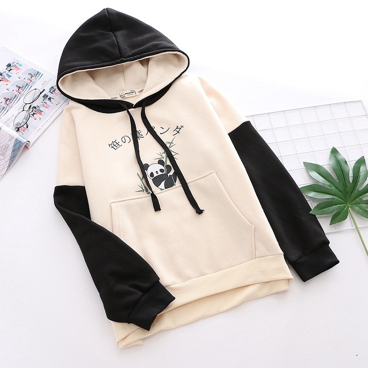 College Style Cute Cartoon Panda Contrast Color Loose Sweater