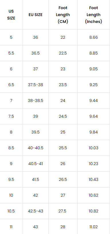 Size: 34, 35, 36, 37, 38, 39, 40, 41, 42, 43