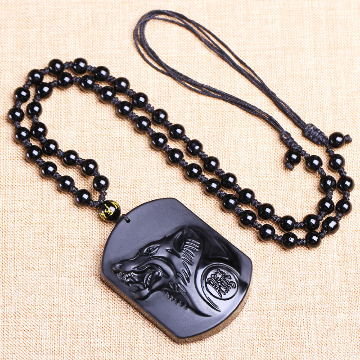 This Obsidian Black Wolf Necklace has been carefully crafted and polished Black Obsidian is a natural volcanic glass that has powerful healing properties. It has the ability to clean the imbalances present in your aura and it is a powerful psychic stone of protection. Obsidian is a stone of vitality, it helps you connect to the purpose of your soul. It has powerful metaphysical properties that protect you from negativity and stress. It is widely used by Tibetan monks to protect themselves from fear by wearing black obsidian jewelry. The Wolf is one of the most remarkable representatives of the fascinating world where nature and spirituality come together. The wolf represents the force, the speed and the instinct, it is embroidered on the stone "the wolf that gallops" in Chinese writing. Stone: Natural Black Obsidian Size of the pendant: 5 cm Necklace length: 50 cm adjustable