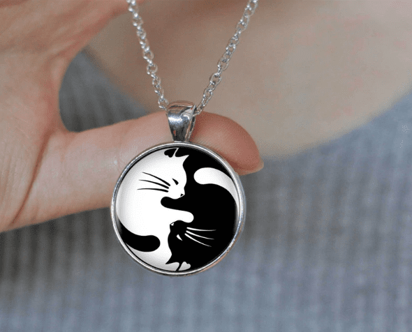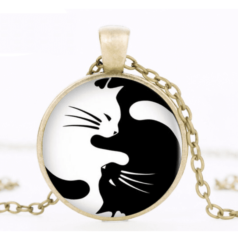 [product name] Tai Chi Yin Yang Cat Time Gemstone Necklace
