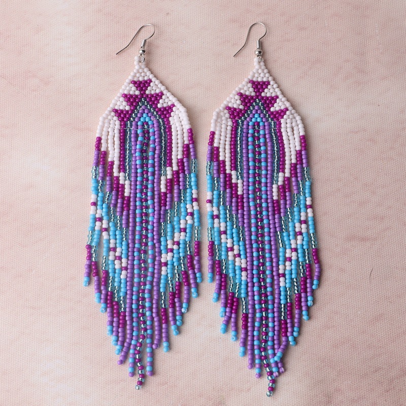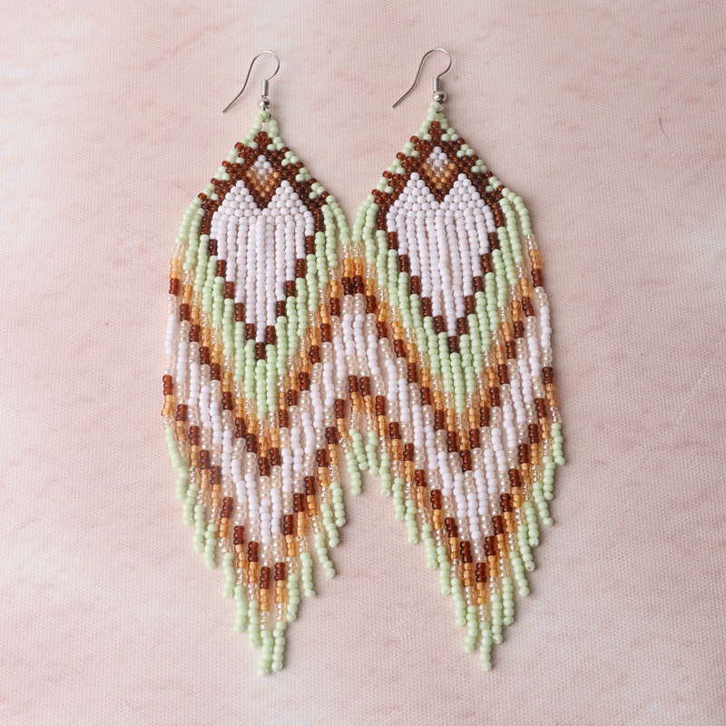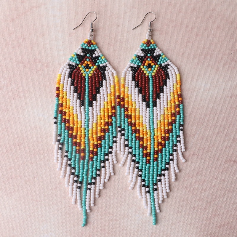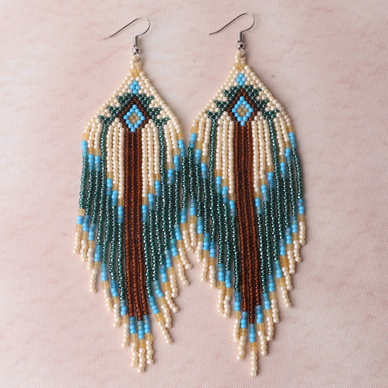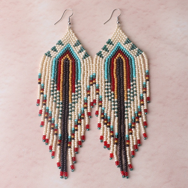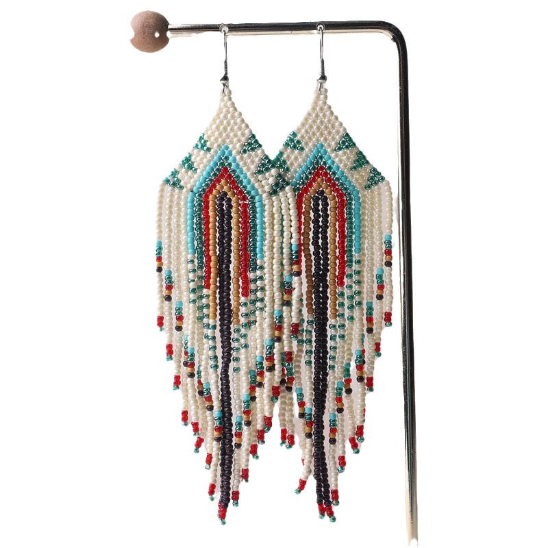 Color Bead Women's Earrings Ethnic Style Hand-woven