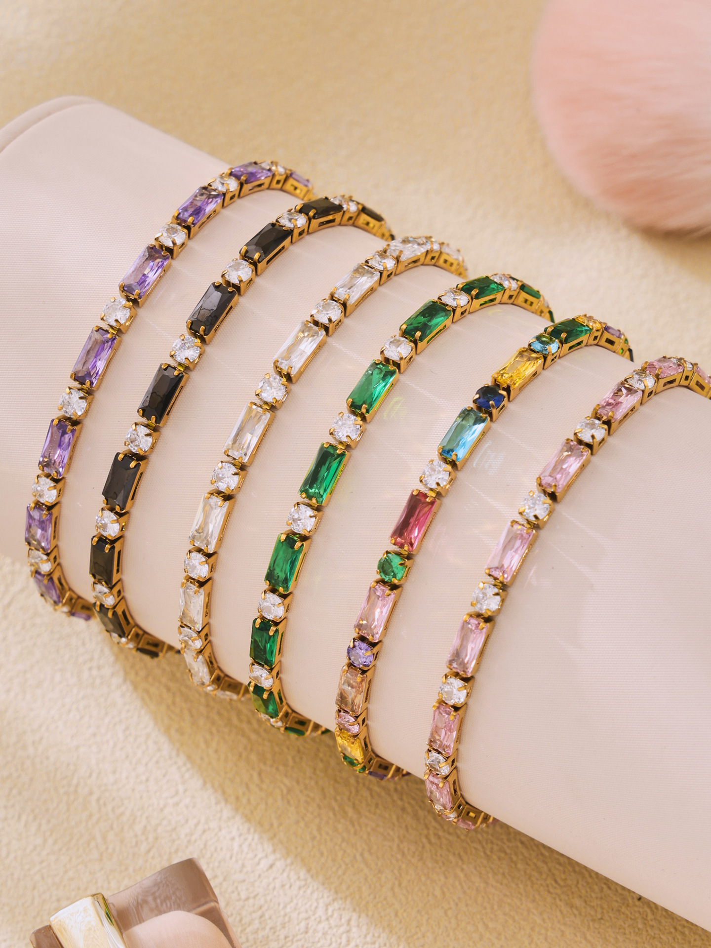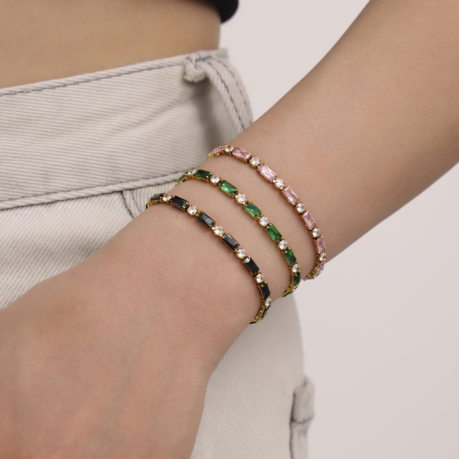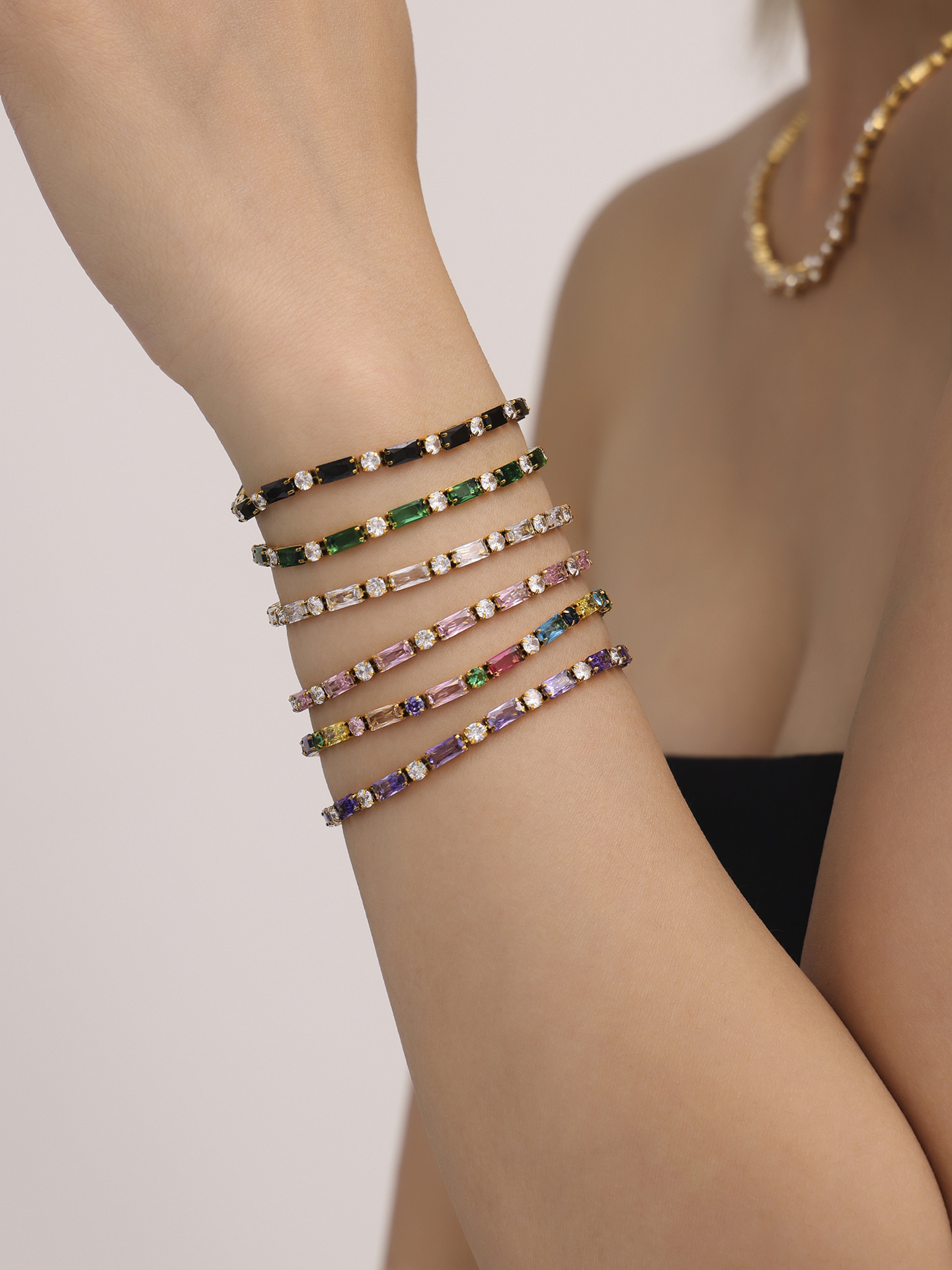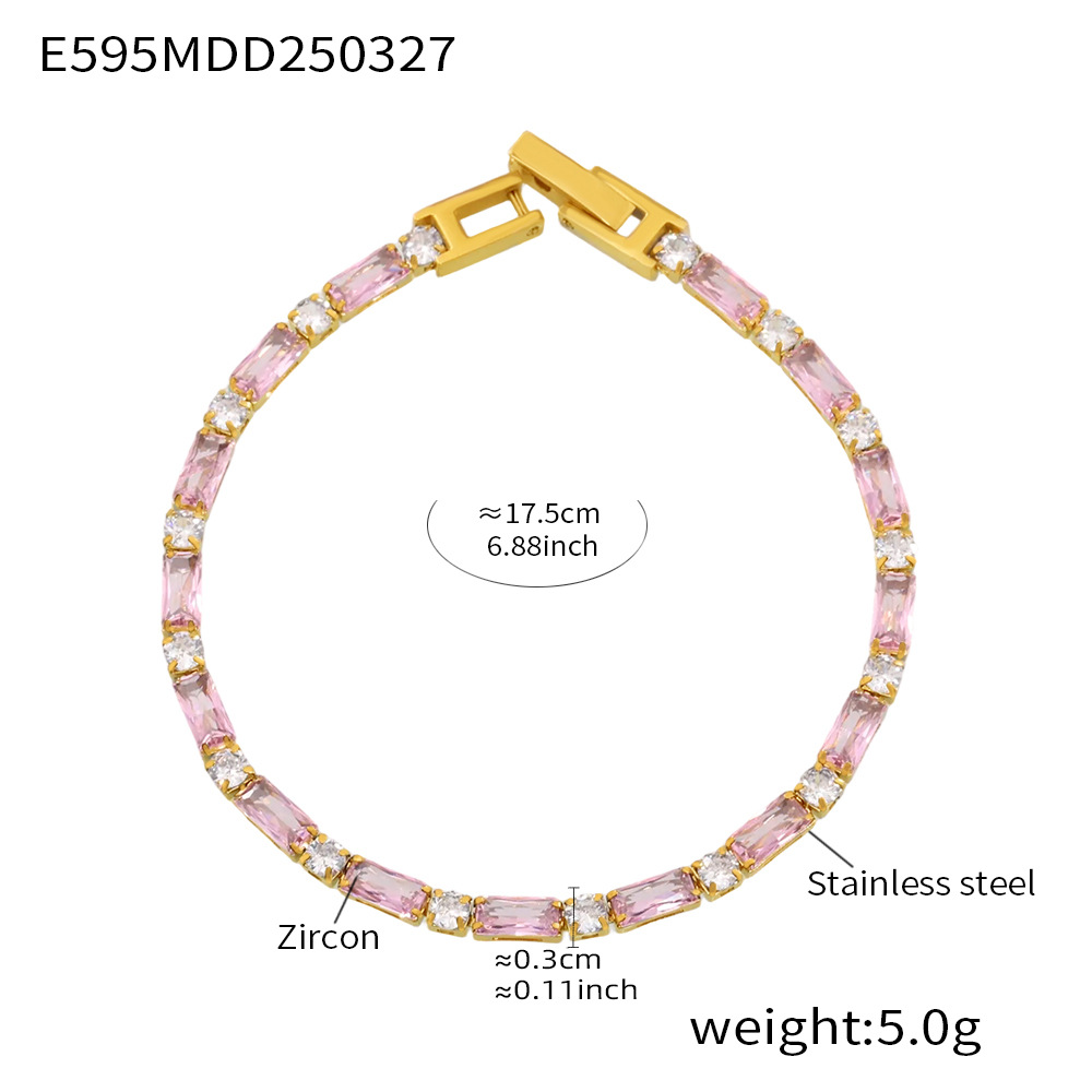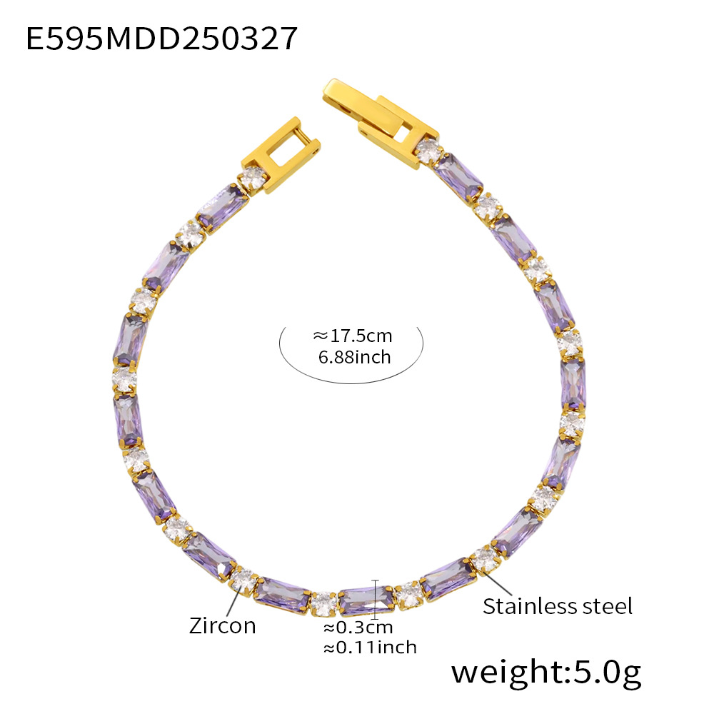 Colors: E595 - Purple Zircon Bracelet 17.5cm, E595 - Black Zircon Bracelet 17.5cm, E595 - White Zircon Bracelet 17.5cm, E595 - Green Zircon Bracelet 17.5cm, E595 - Pink Zircon Bracelet 17.5cm, E595 - Mixed-Color Zircon Bracelet 17.5cm