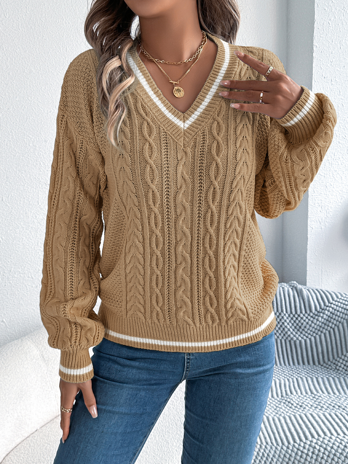 Neckline: V-neck