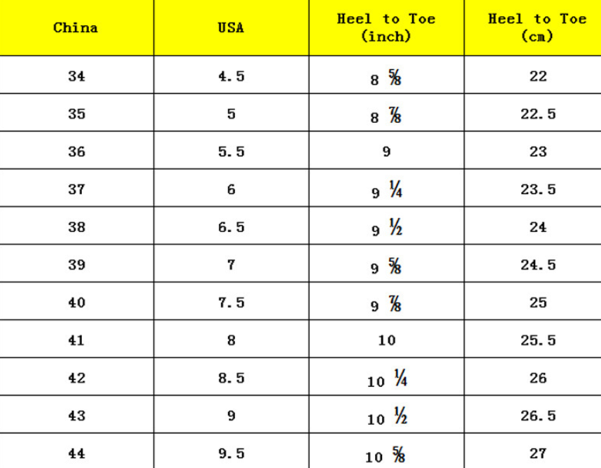 Size: 34, 35, 36, 37, 38, 39, 40, 41, 42, 43