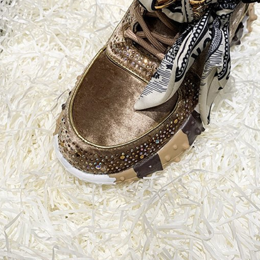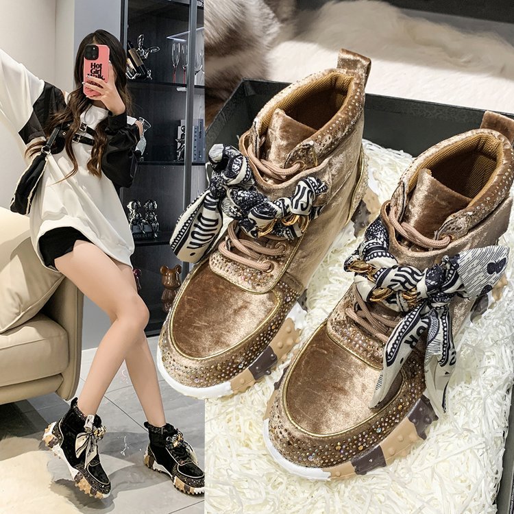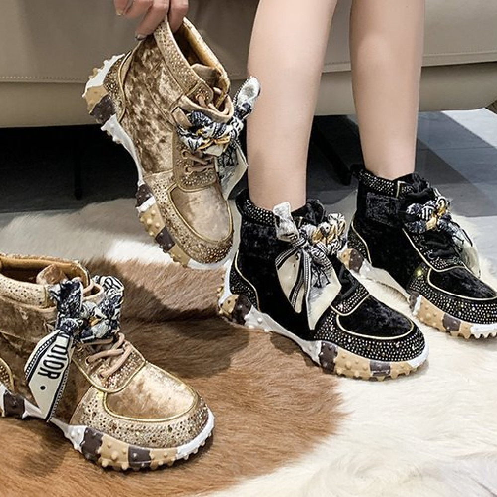 Color-blocking High-top New Bow Sneakers