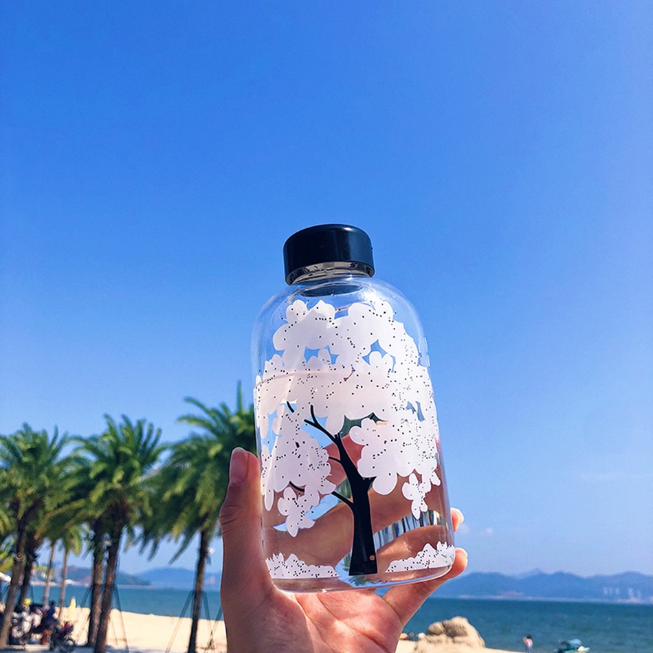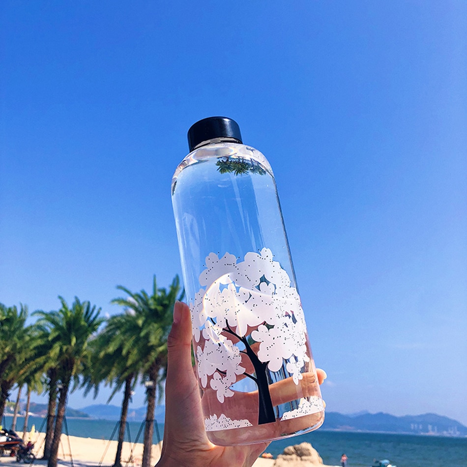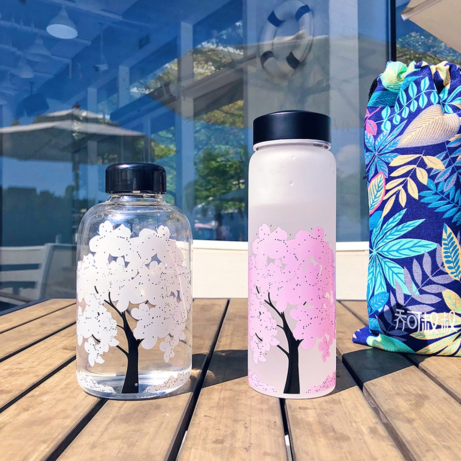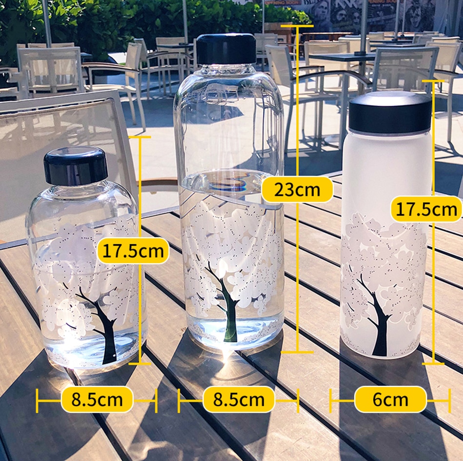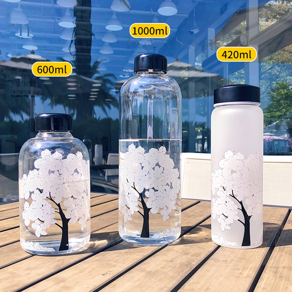 100%Brand new high quality. Feature: 1. High borosilicate glass material, anti-explosion. 2. Healthy and safe, high temperature resistant, no deformation. 3. The hot water is placed in the water bottle, and the cherry blossom pattern will change color. 4. 420ml is frosted material, 600ml and 1000ml is transparent glass material.(Please see the picture for the size of the water cup)