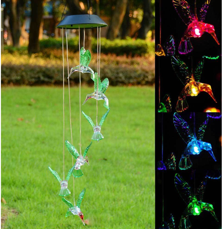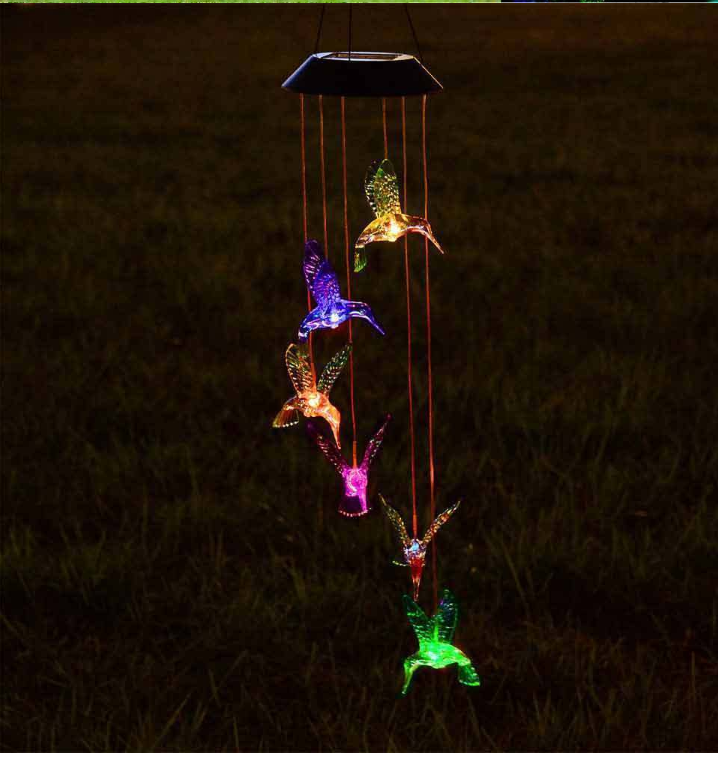 ①Multiple Color-Changing:Solar wind chimes Charge during the day time and Wind chime light will light up automatically at night. Hummingbird wind chimes featuring a color changing LED bulb