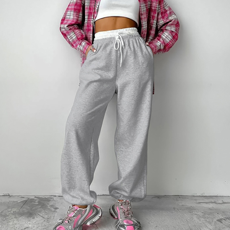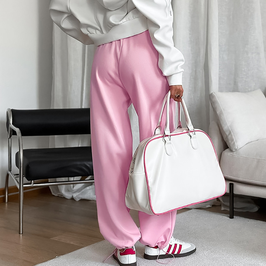 Color Contrast Drawstring Wide Leg Leisure