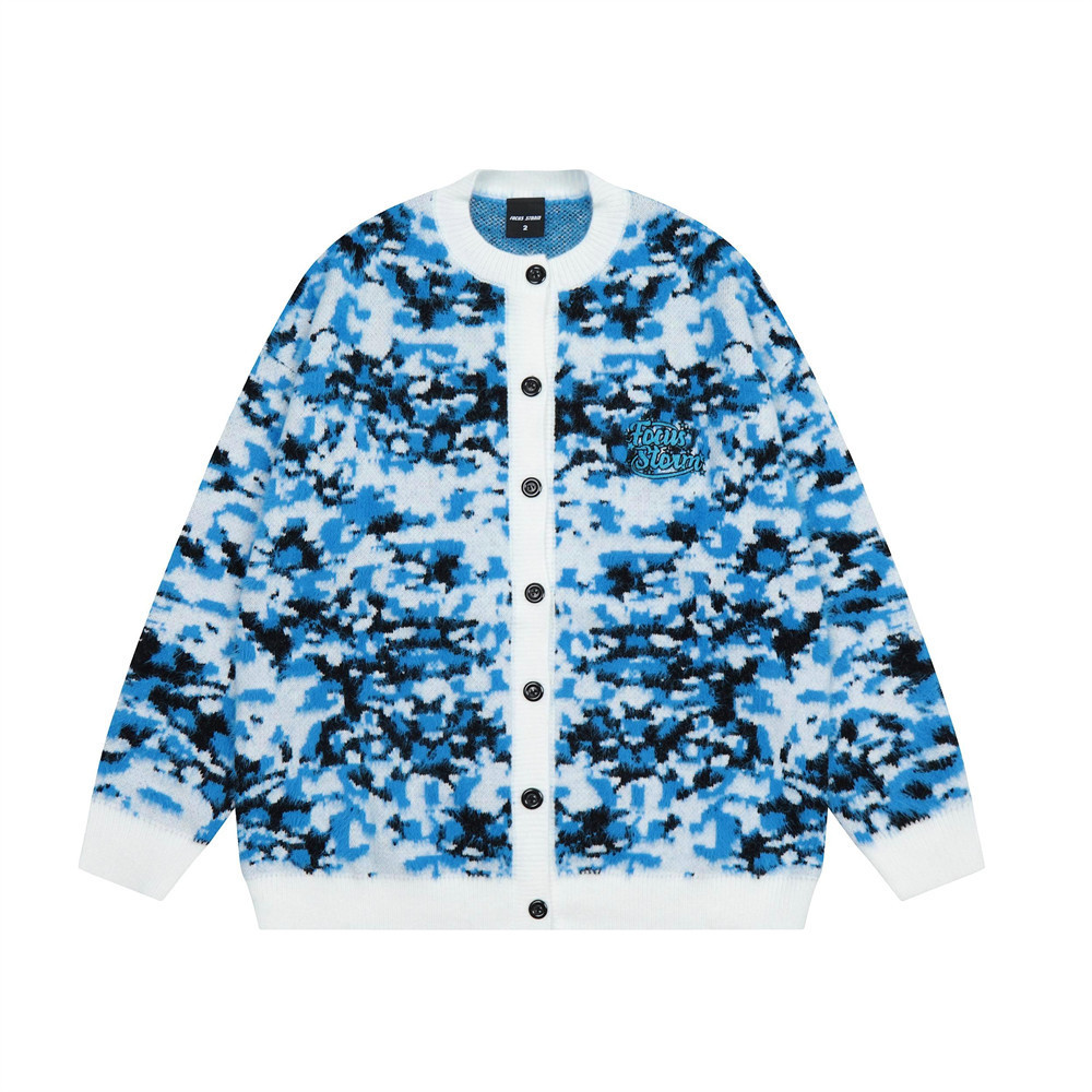 Color Contrast Jacquard Crewneck Knitted Cardigan Men's Sweater Coat Sweater