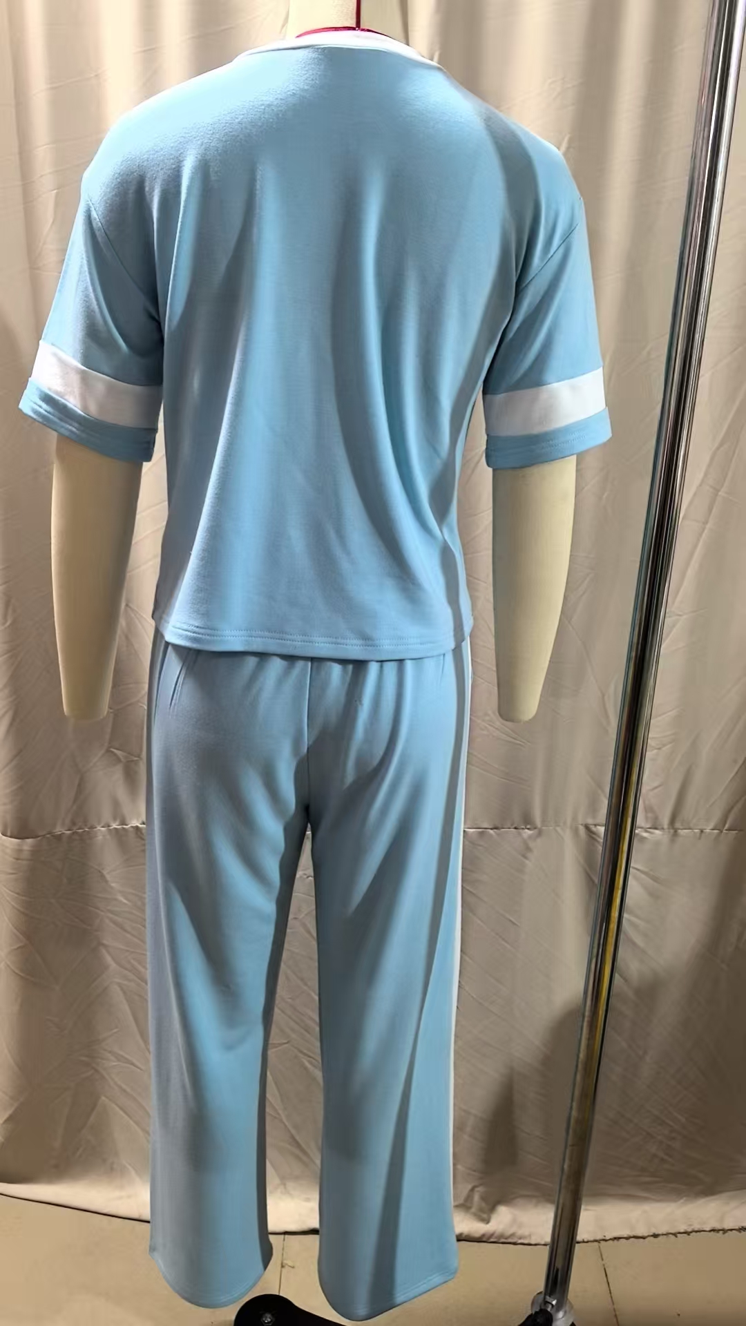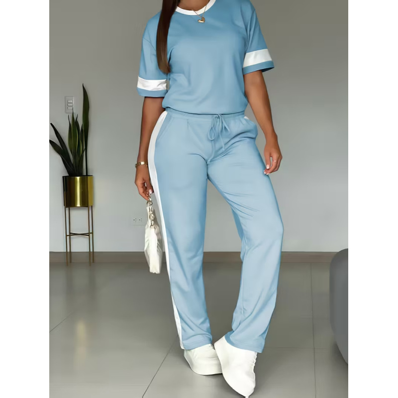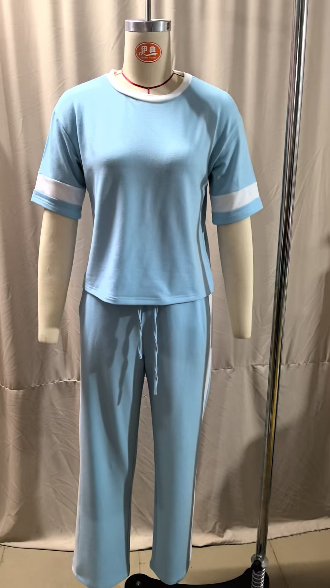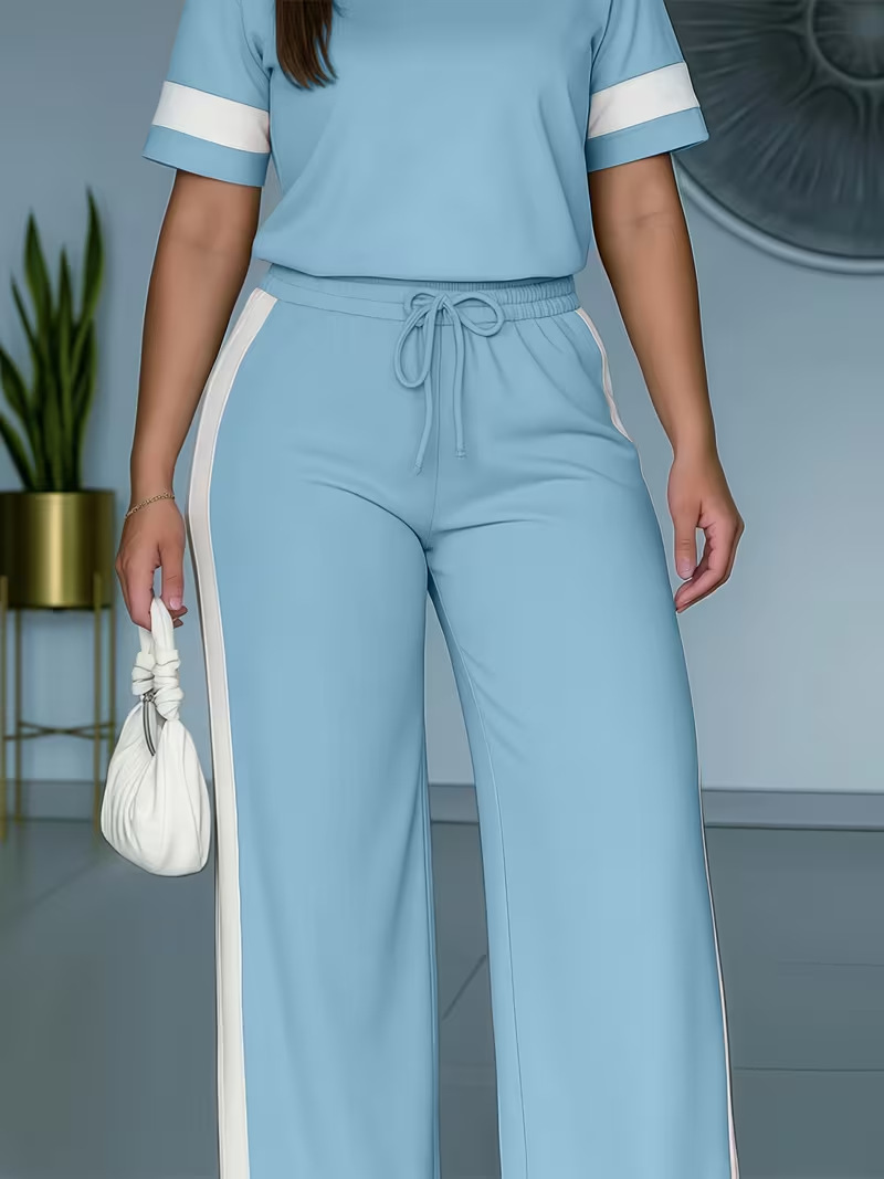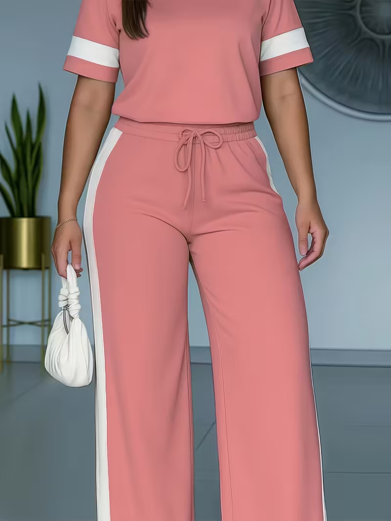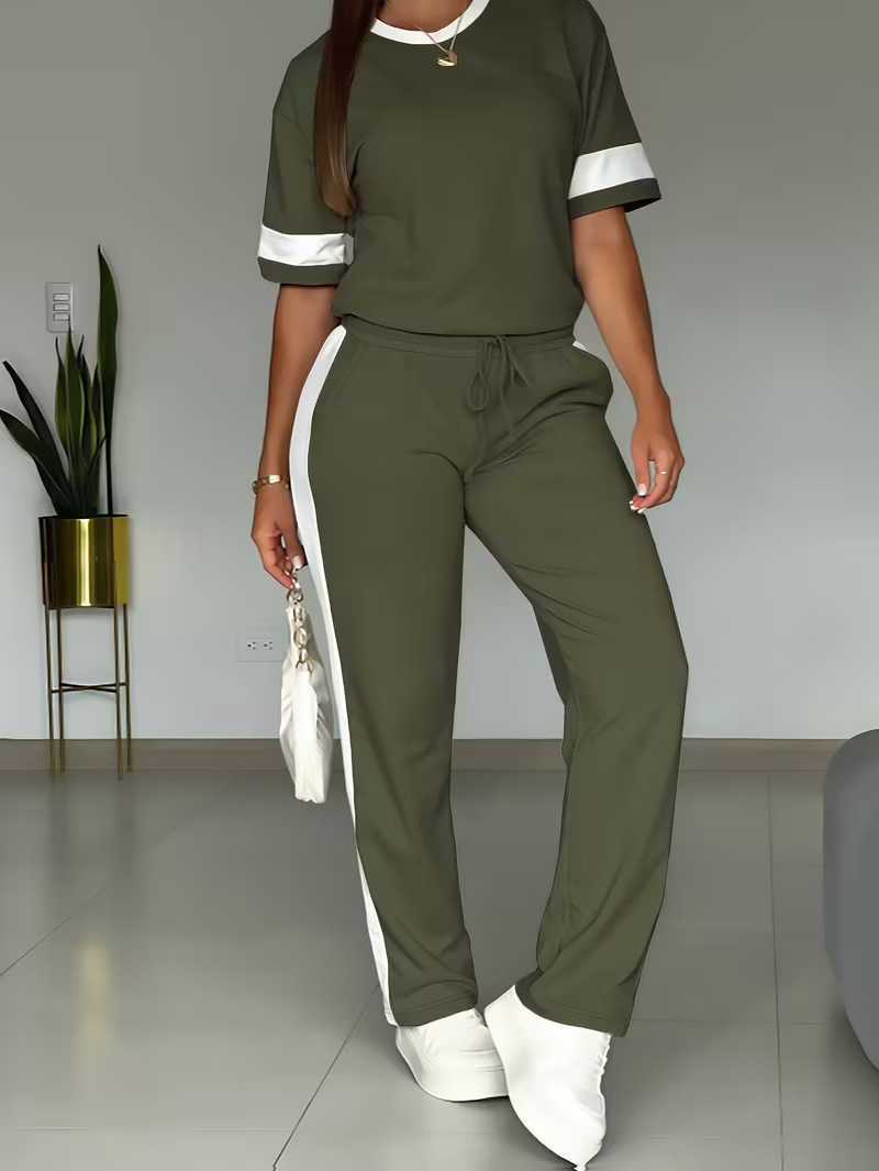 Color-blocked ensemble.