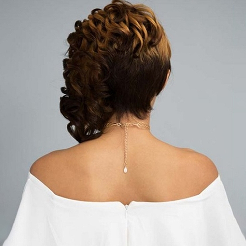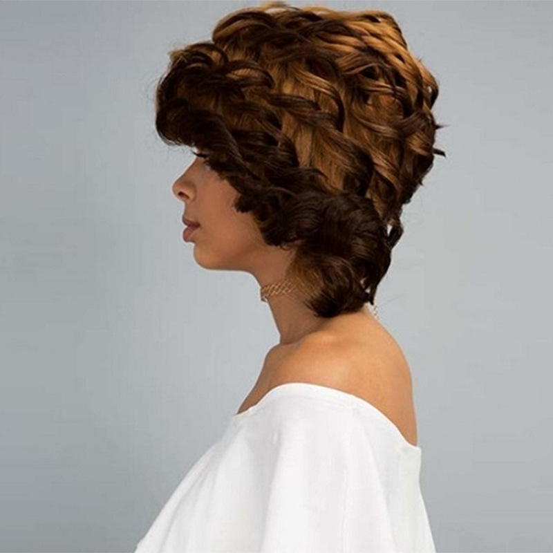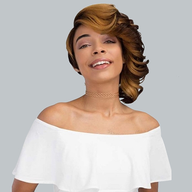 Wig hairstyle: long curly hair with oblique bangs