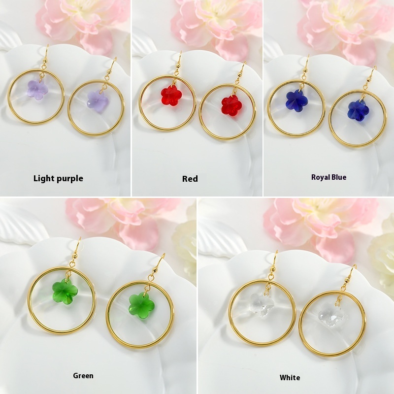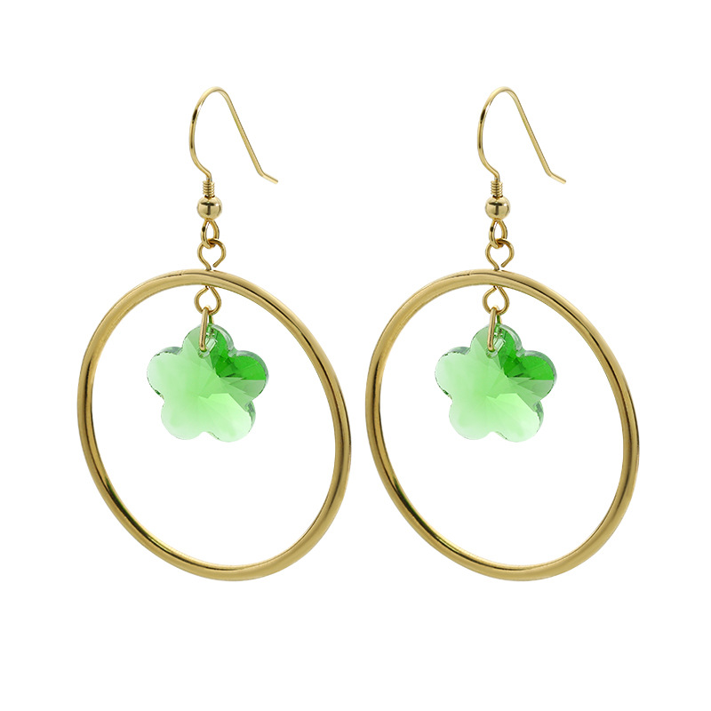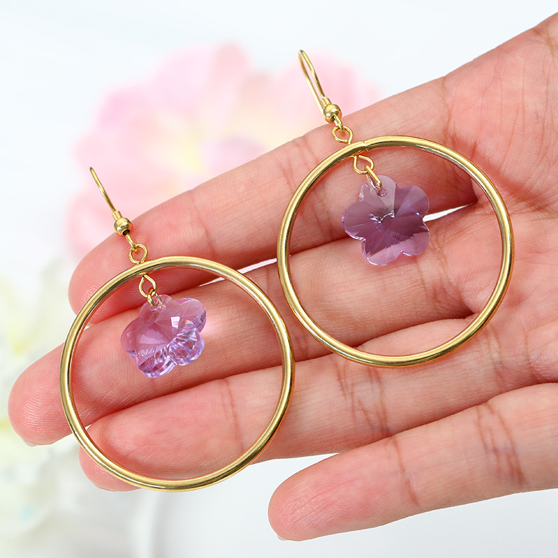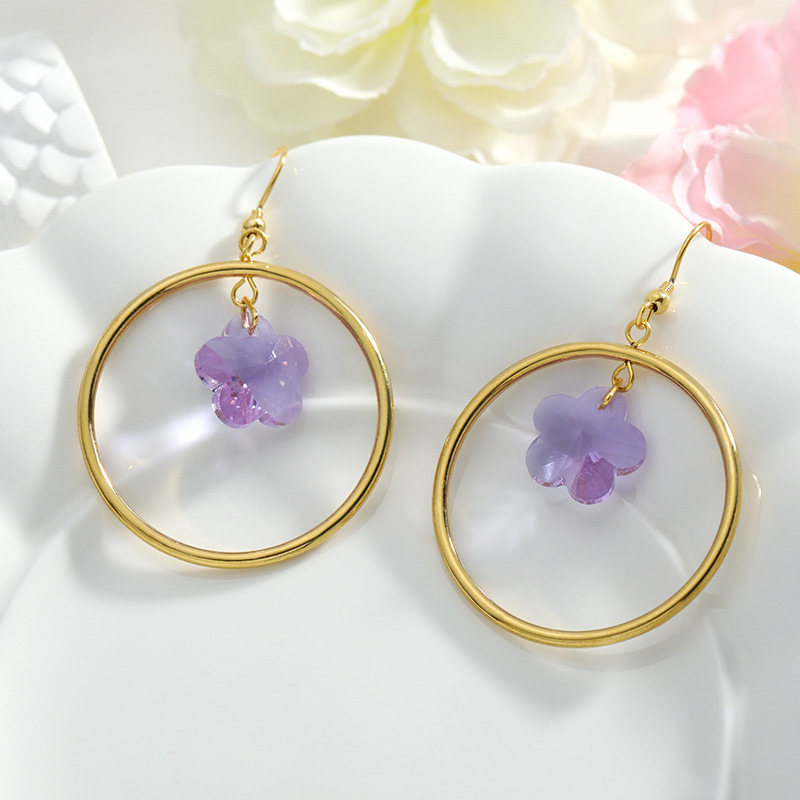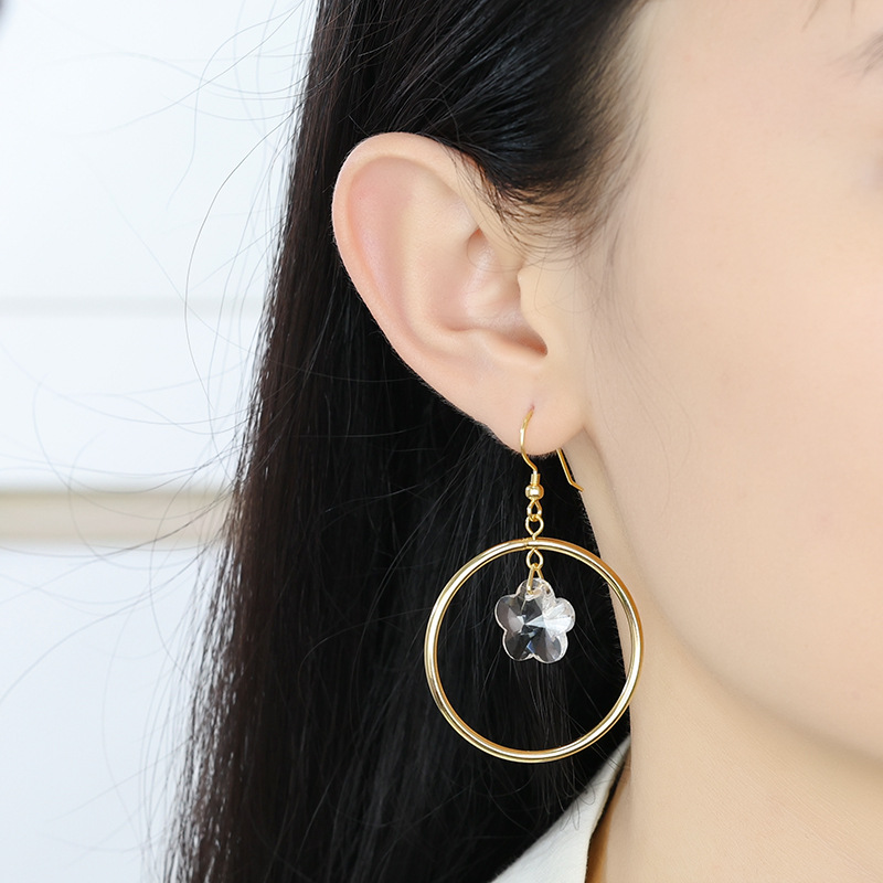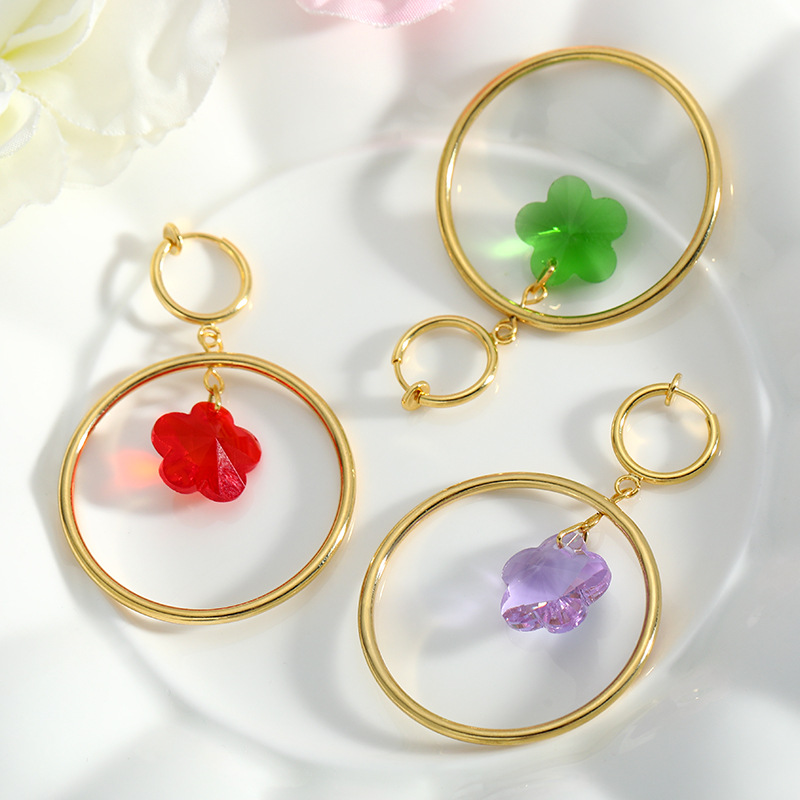 Color: round crystal flower earrings/metal ear hook, round crystal flower earrings/spring ear clip