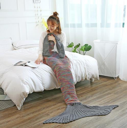 Color Grid Crochet Sofa Cover Blanket Air Conditioner