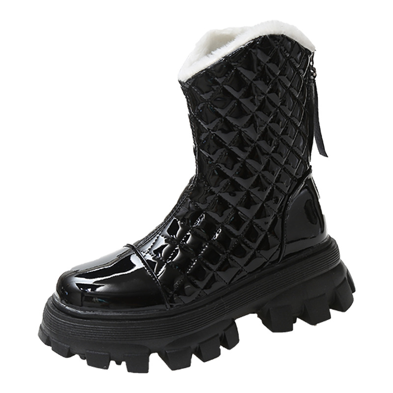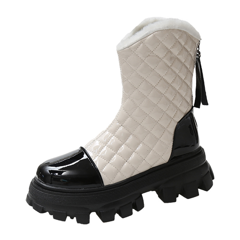Color Matching Casual Thick Heel Plus Velvet To Keep Warm