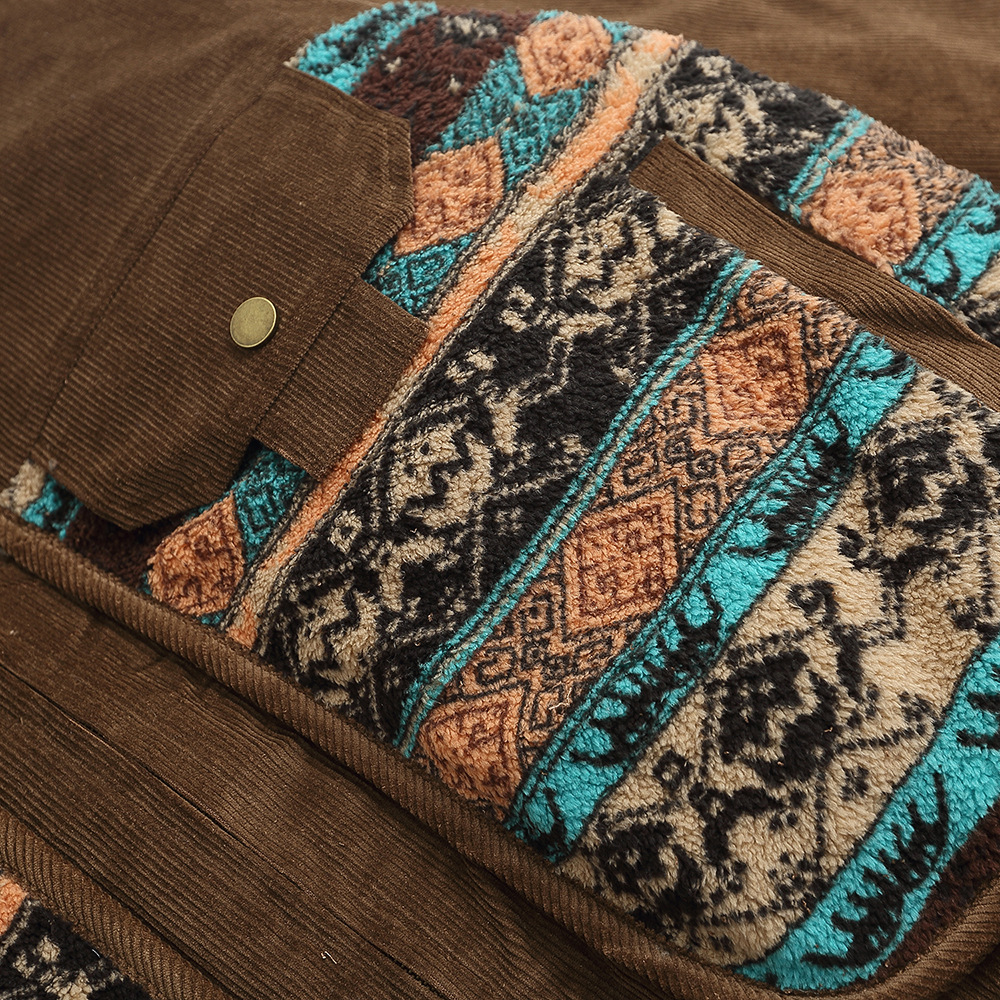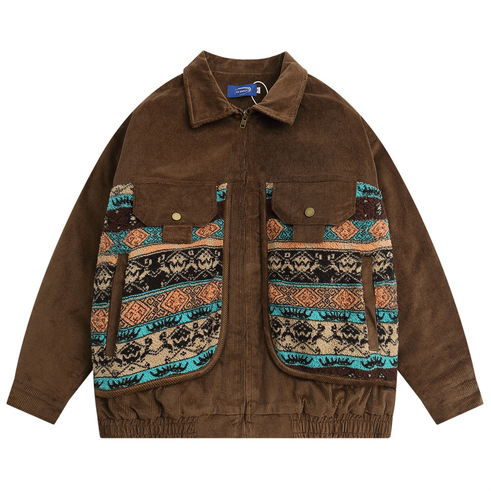 Color Matching Large Pocket Cotton Jacket Coat Men's Loose Autumn And Winter Quilted Lapel Cotton Top