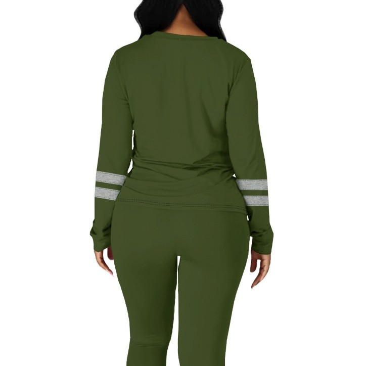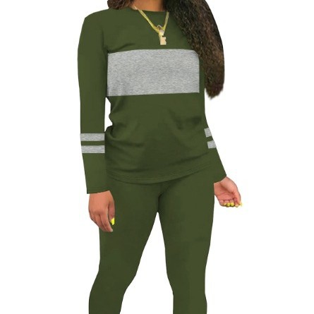 Color Matching Round Neck Long Sleeve Top With Tight Trousers Suit Two-piece Set