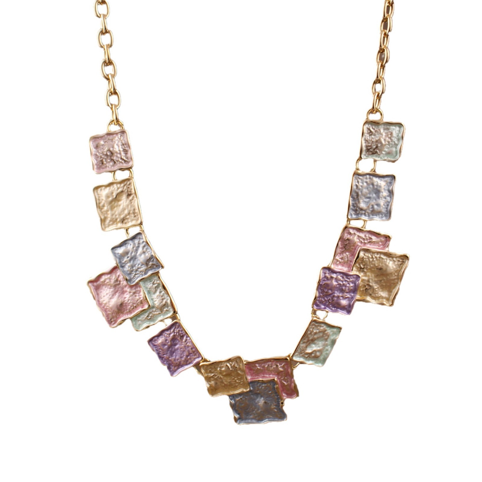 Color: blue square geometric ear studs necklace suit-Silver, spring color square geometric ear studs necklace suit-gold, brown square geometric ear studs necklace suit-Gold