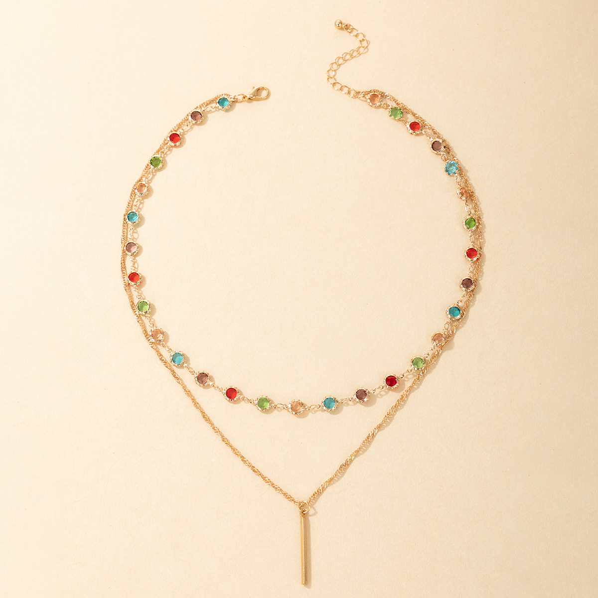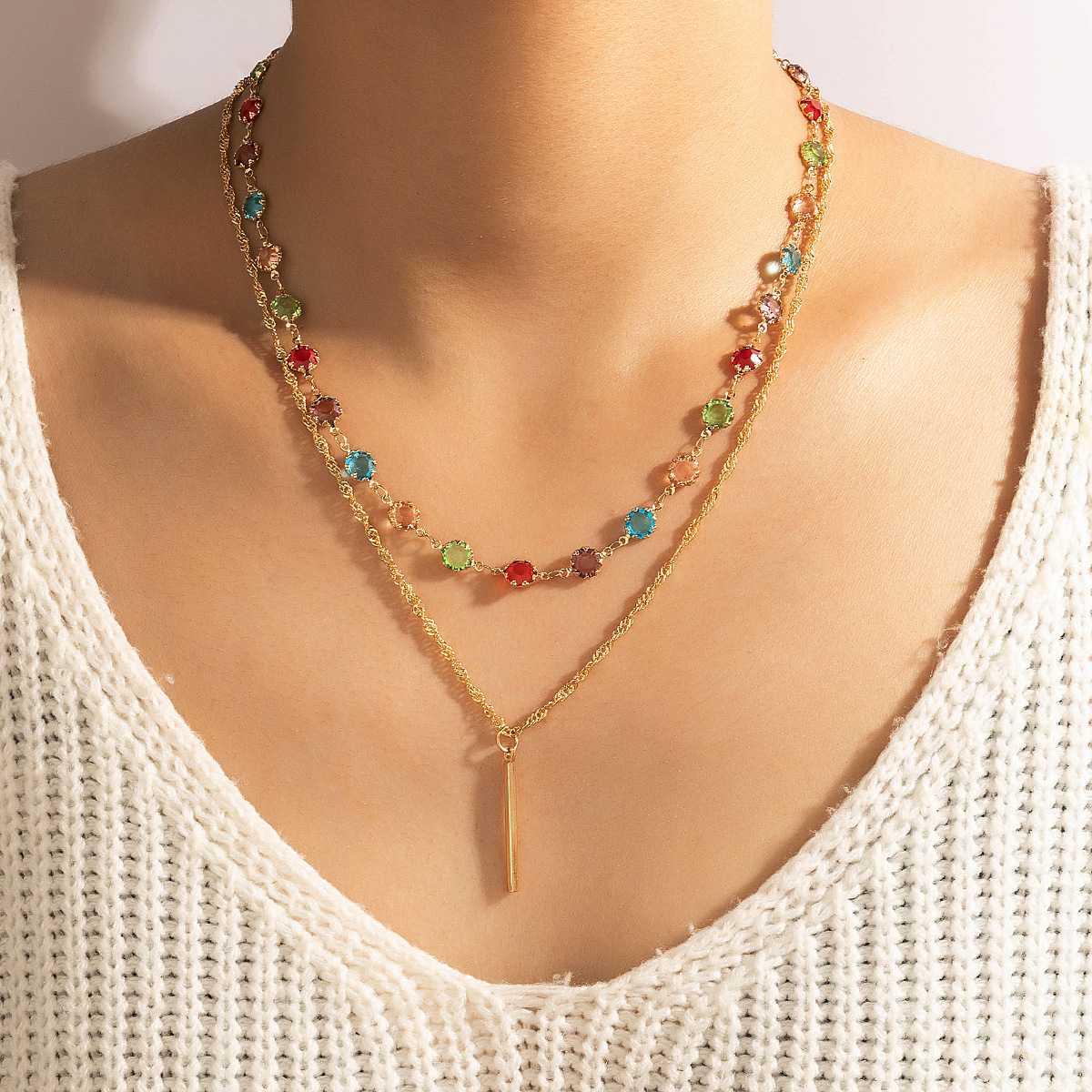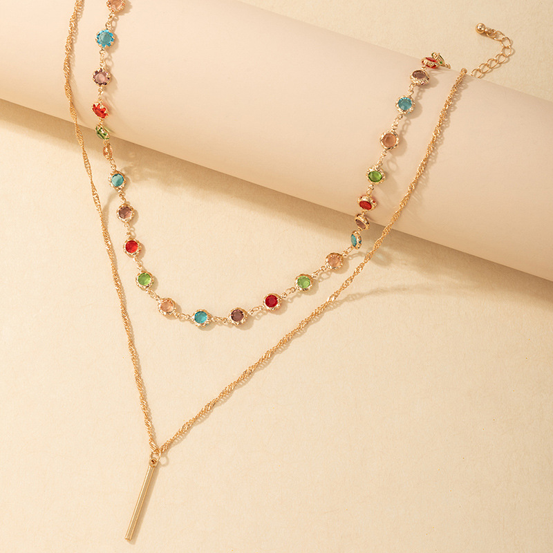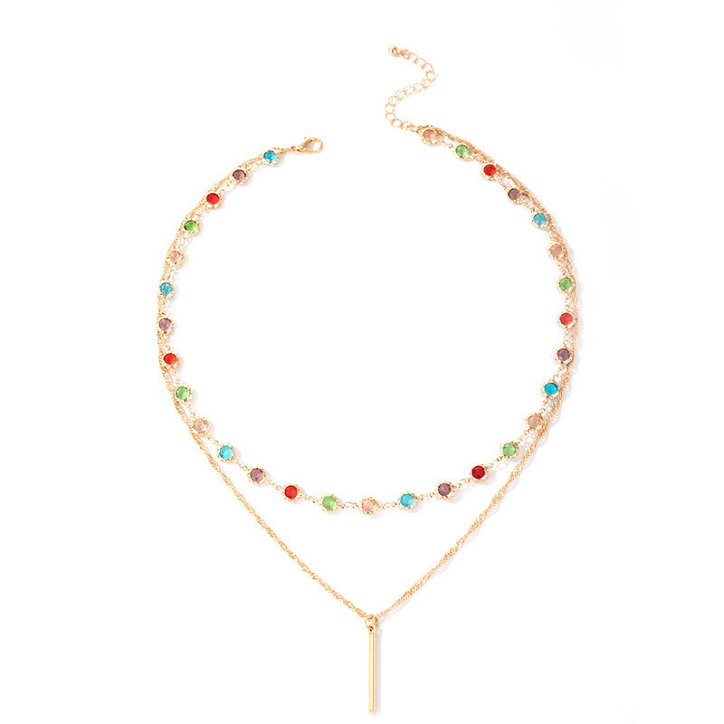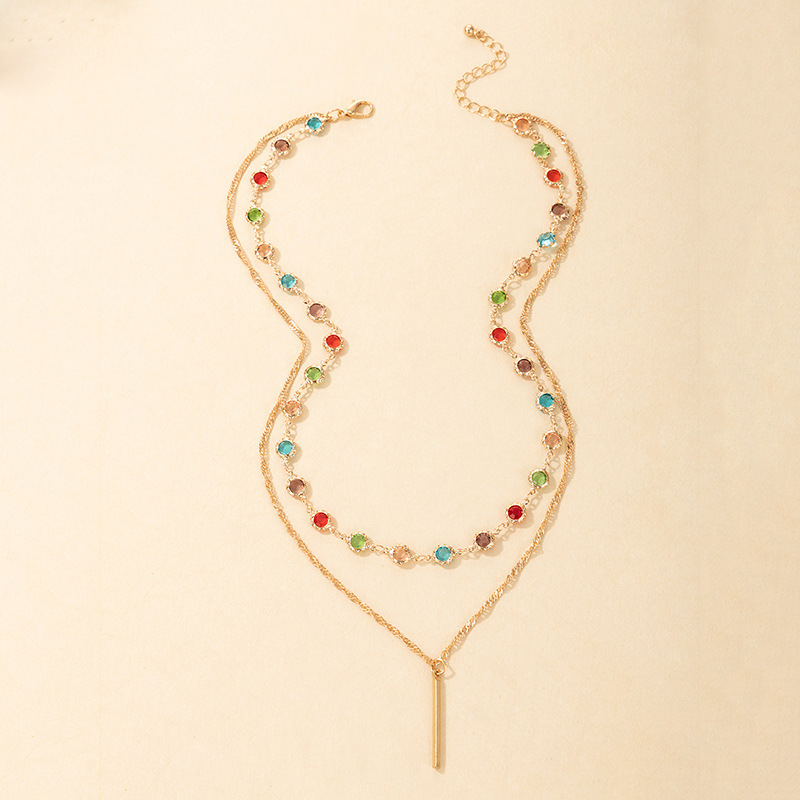 Color Rhinestone Long Simple Ins Style Word Necklace