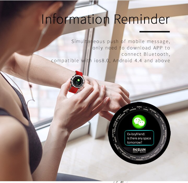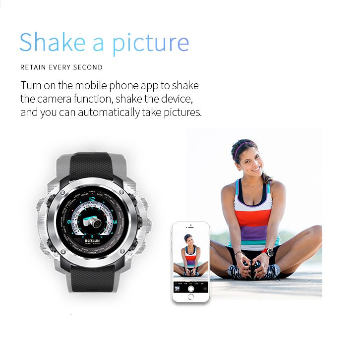 Main features: pedometer / burning calories / distance / heart rate monitor / sleep monitor / alarm / call / social media reminder / stopwatch / wrist display light / sit down reminder / firmware OTA / remote camera / find clock / find phone / GPS orbital motion on the app