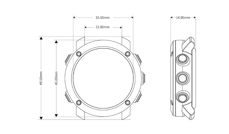 Centimeter / 1.77 inch dial thickness: 1.5 cm / 0.59 inches