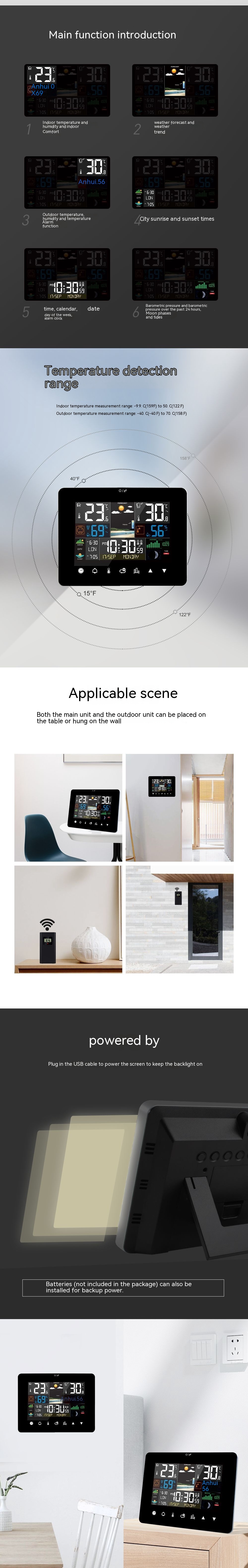 Humidity: indoor and outdoor measurement range: 20% RH~95% RH