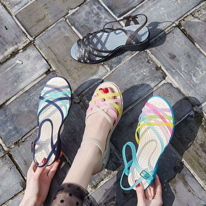 Popular elements: buckle, waterproof platform, color matching, candy color
