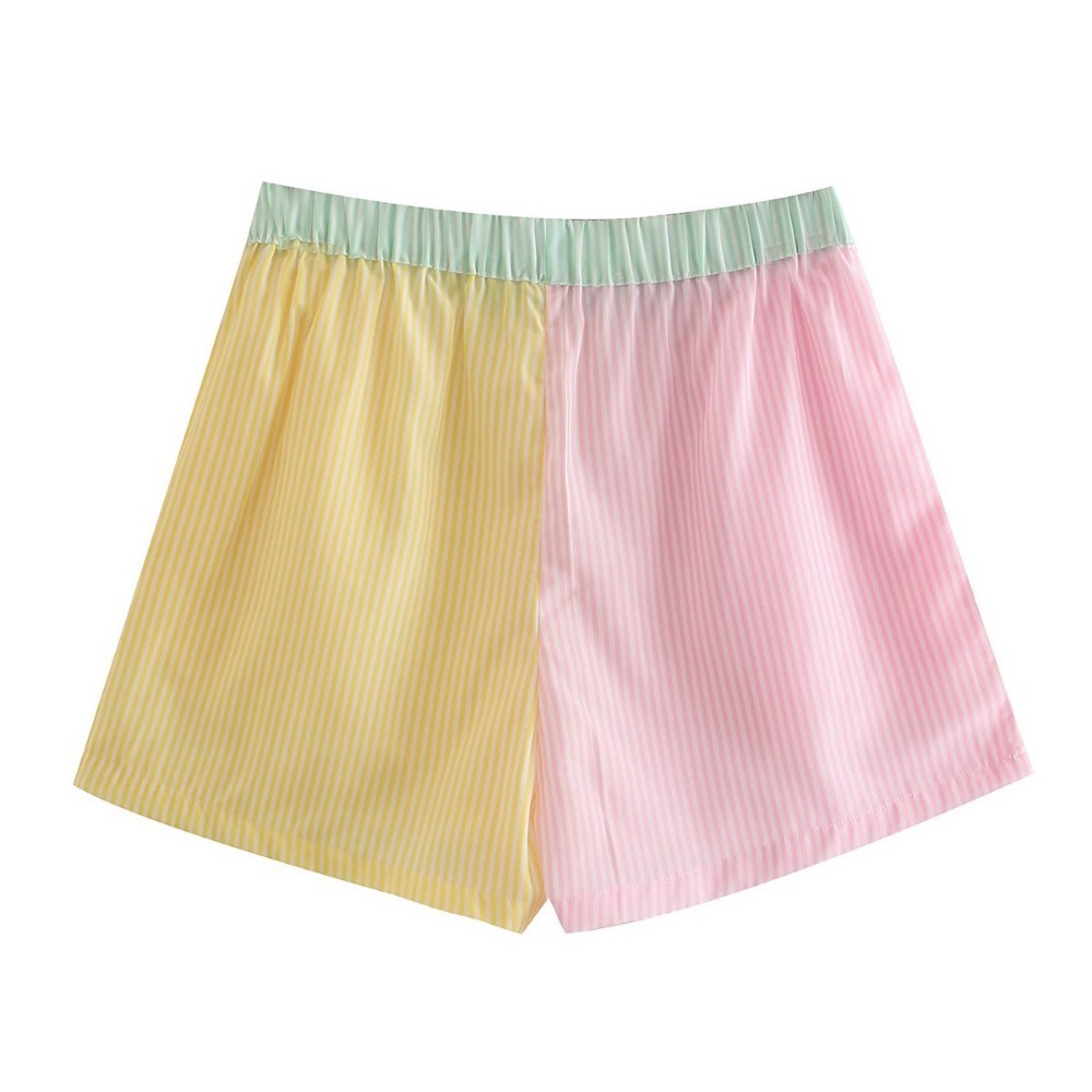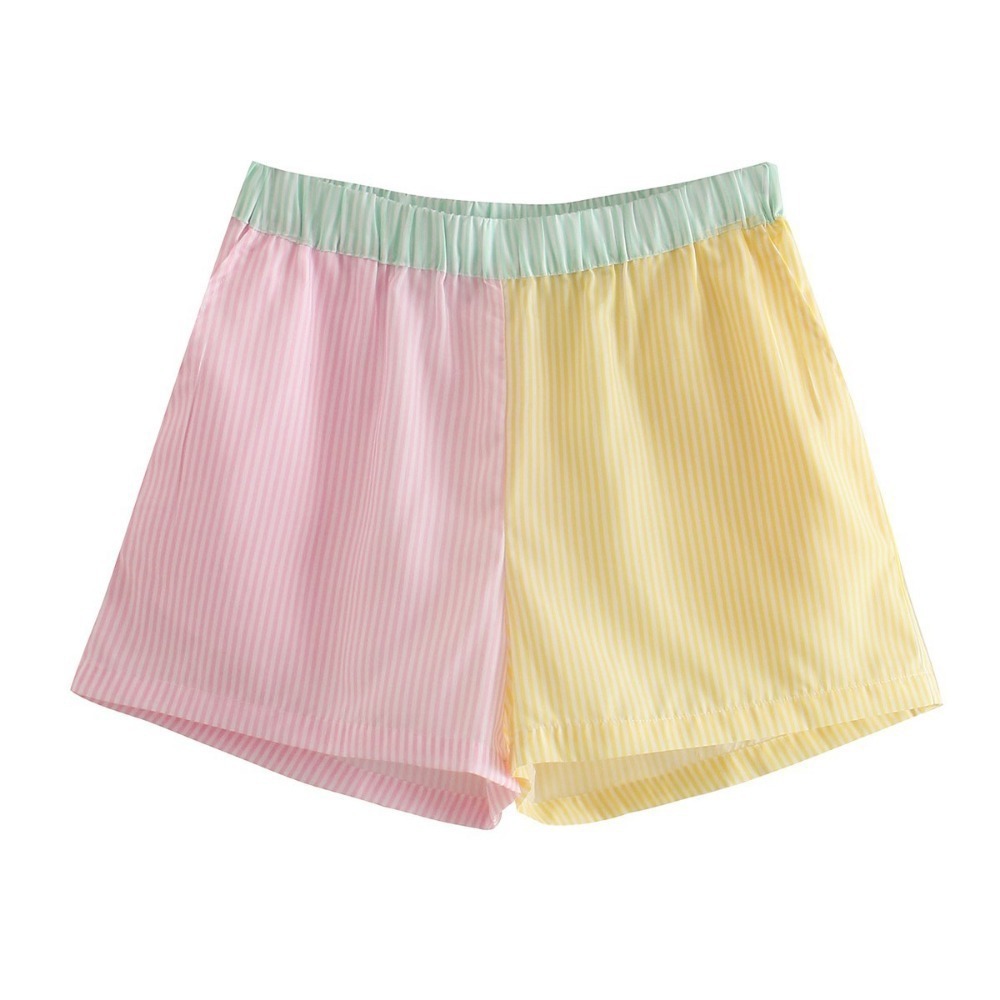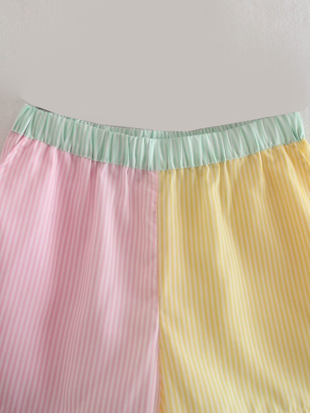 Colorblock High-waist Striped Elastic High-waist Slacks