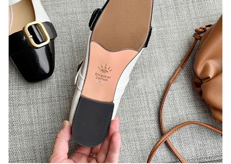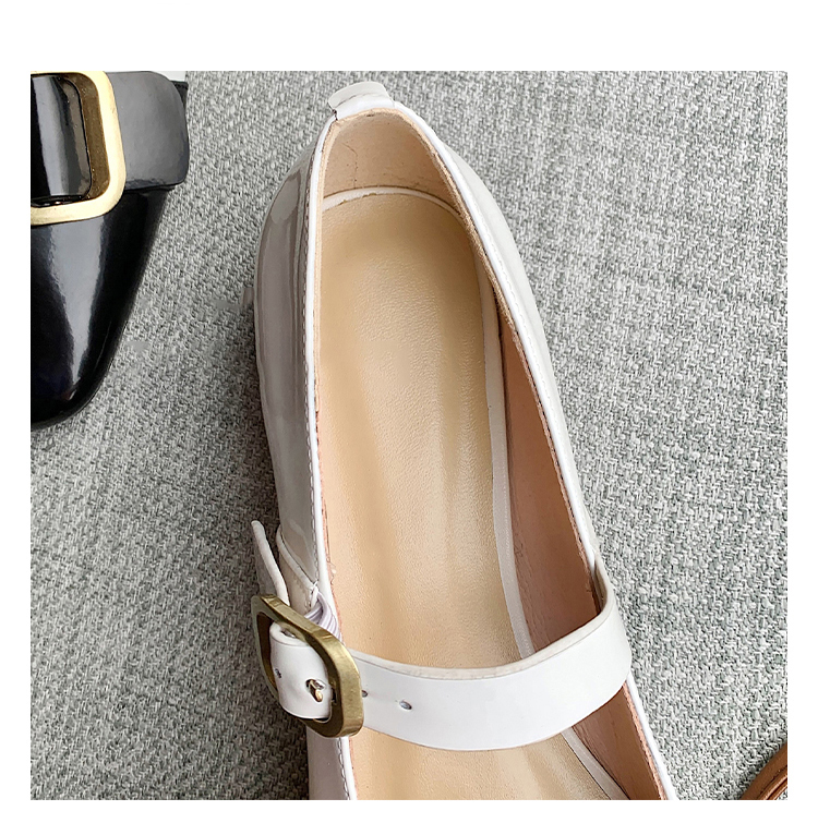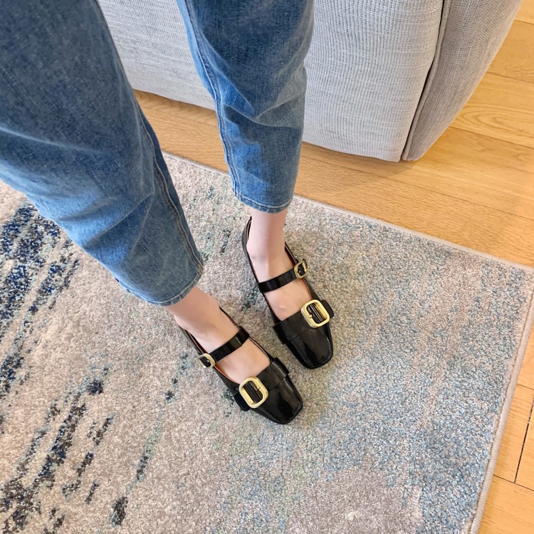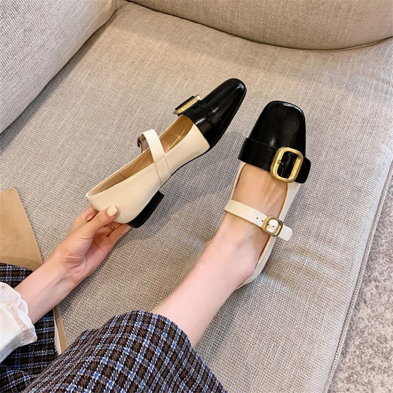 Colorblock Square Toe Mary Jane Shoes Open-edge Beaded Cowhide Single Shoes Women's Flat Shoes