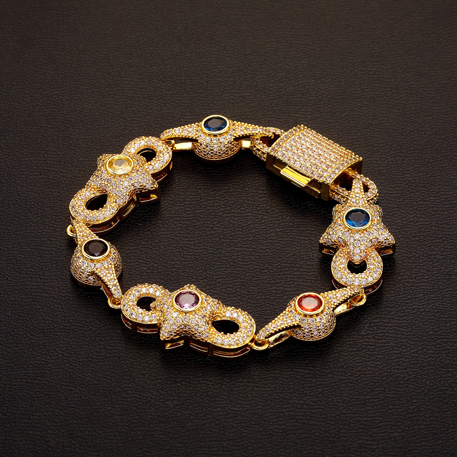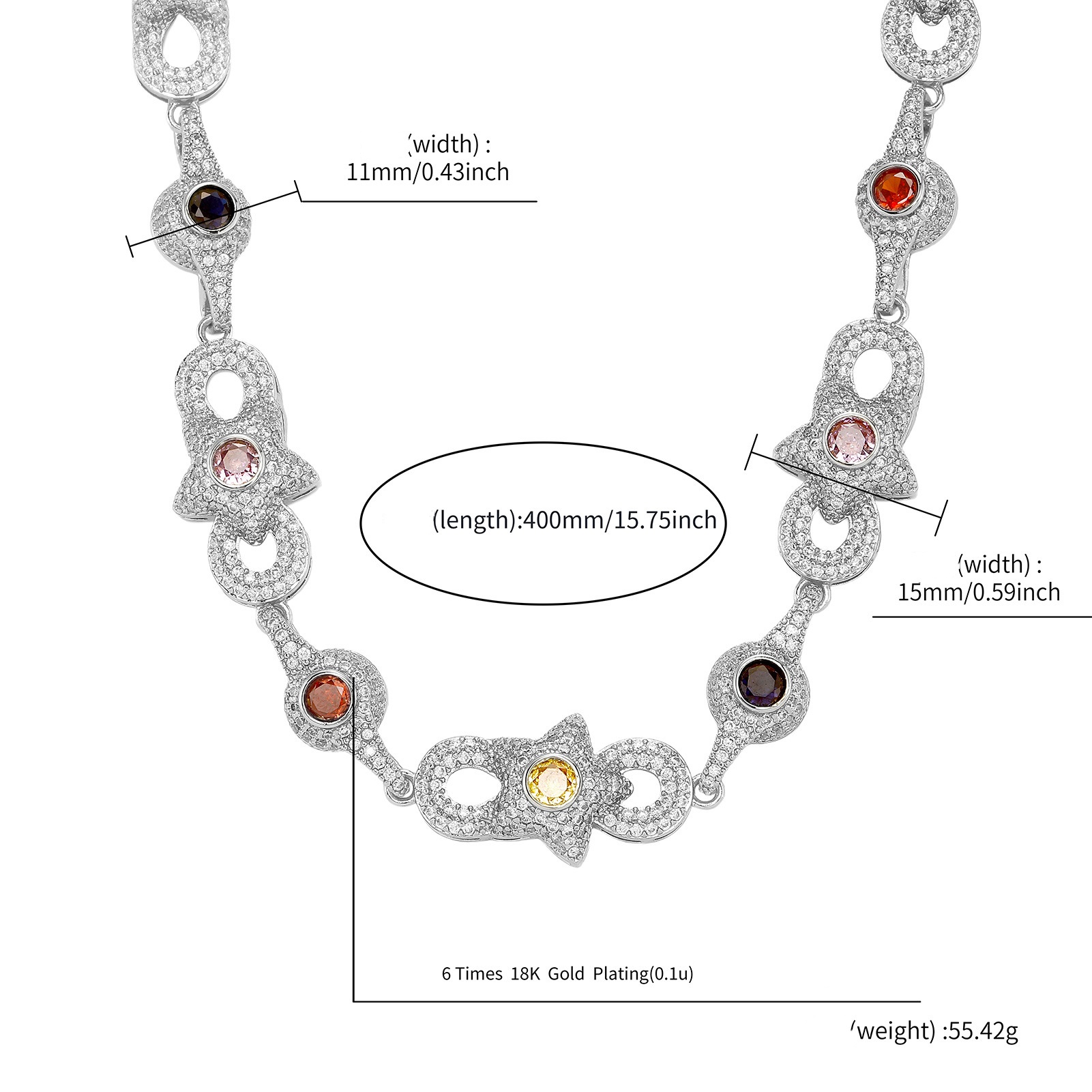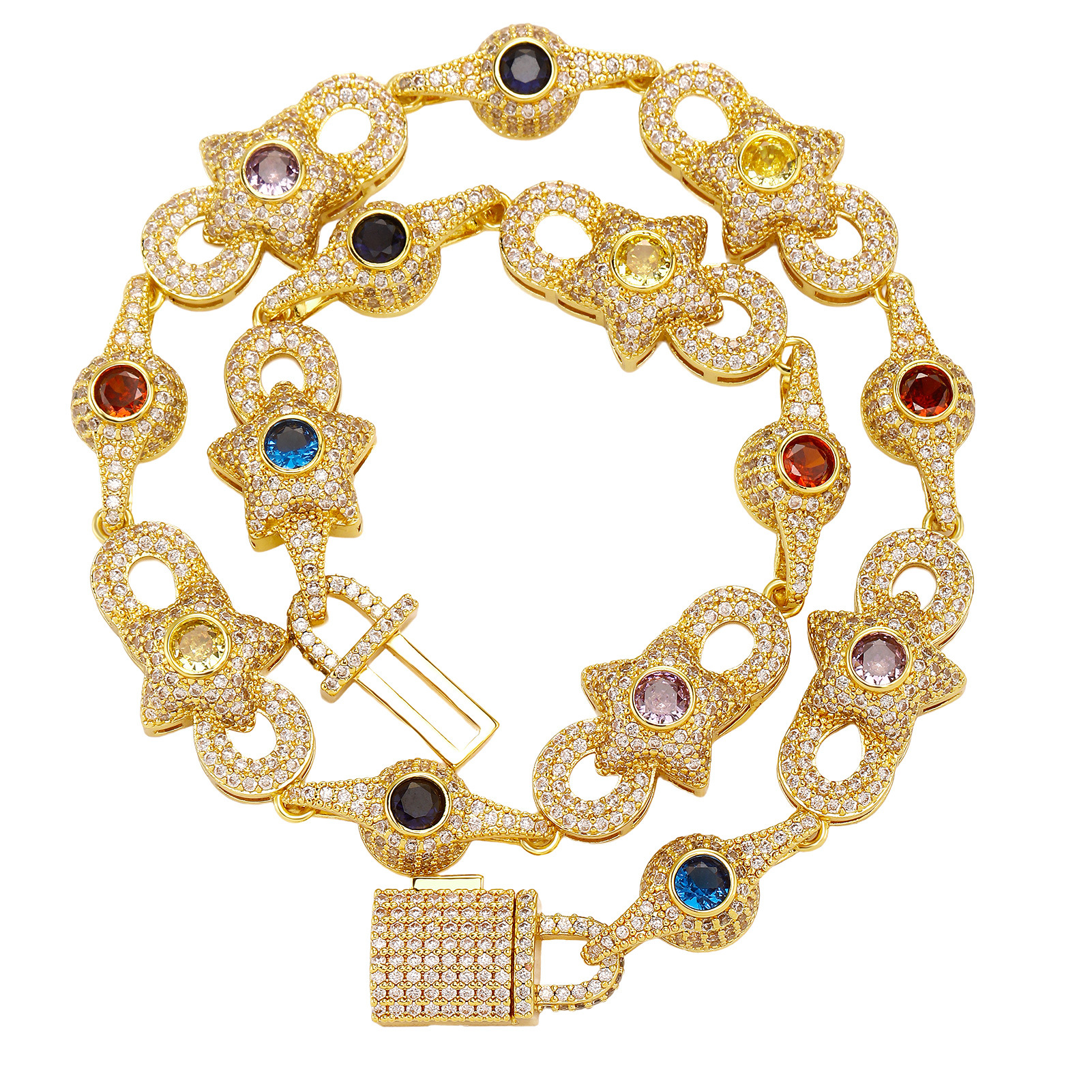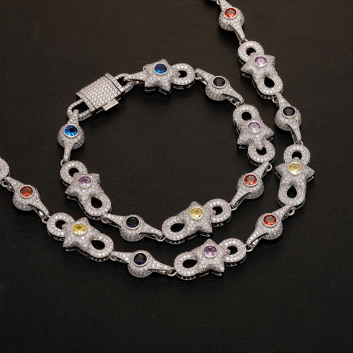 Colored Gemstone Chain Zircon Men's Necklace