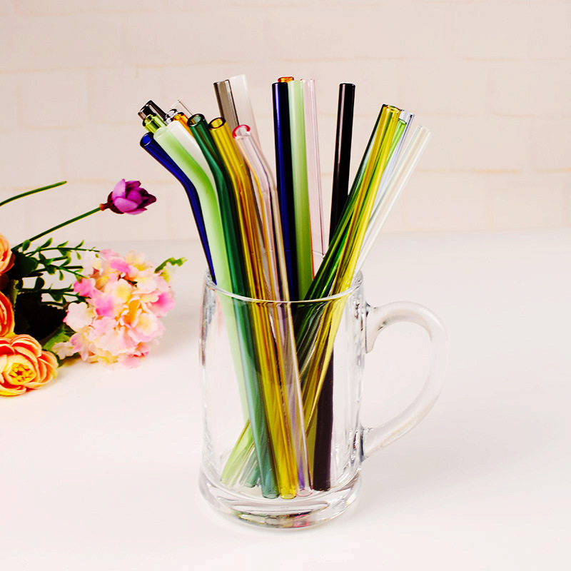 Colored High Borosilicate Environmentally Friendly Heat-resistant Curved Glass Straws