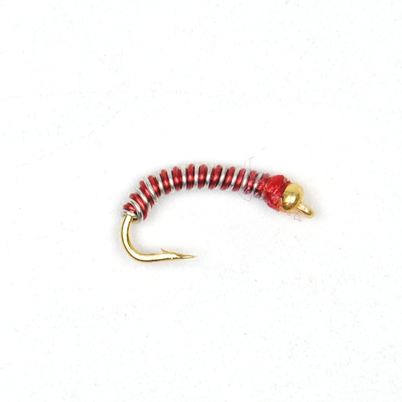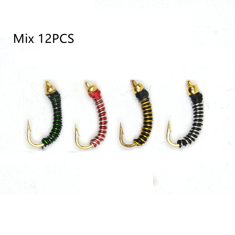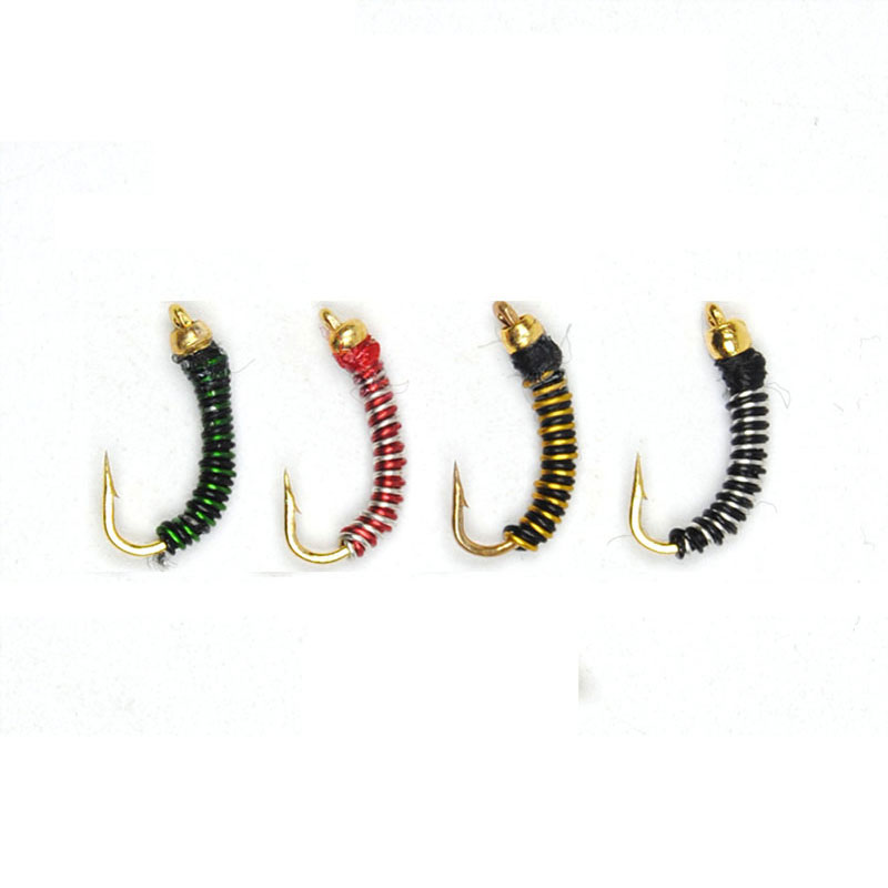 Features: Gold pipe hook binding, sharp hook point, bionic midge larva design, using copper head + metal body, can quickly sink water, realistic swimming. Suitable for fly fishing trout, mandarin fish, perch and so on.