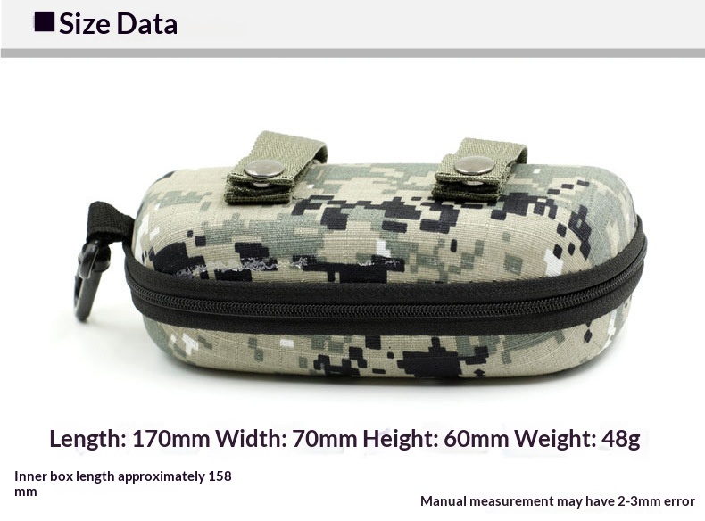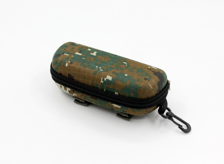 Style: Large travel and sports EVA eyeglass case with a hanging hook and colorful zipper; optional belt attachment available to improve compression resistance.