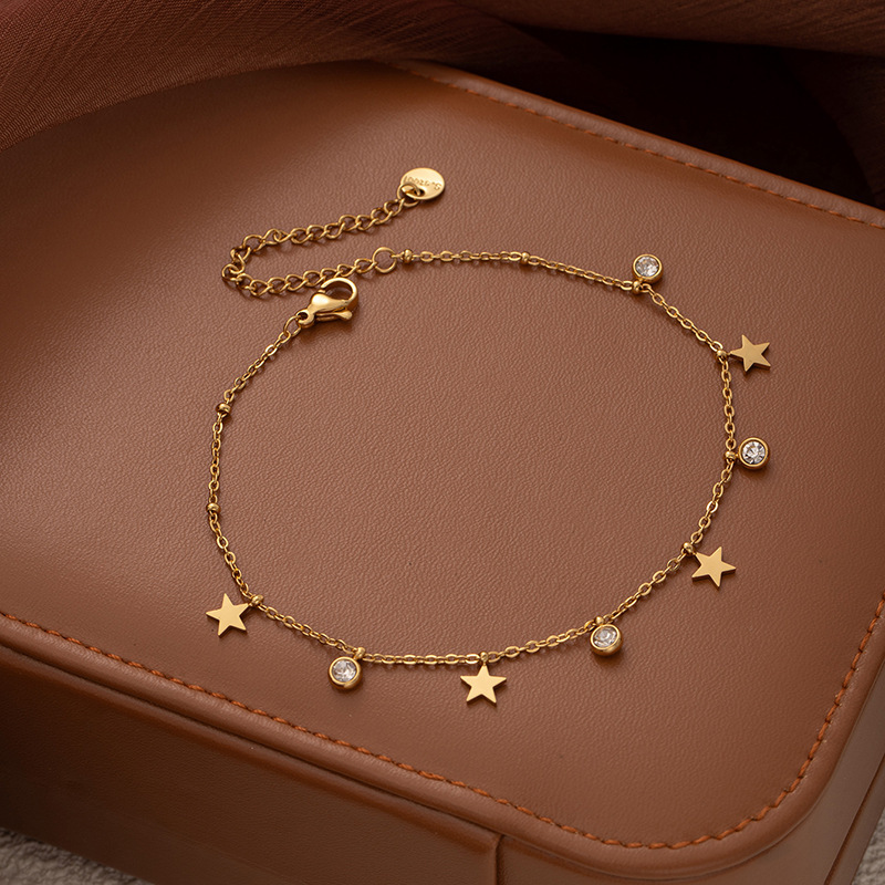 Product information:Type: Anklet Color: L495 Five-Pointed Star Inlay Material: Zircon Material: Titanium Steel Design: Geometric