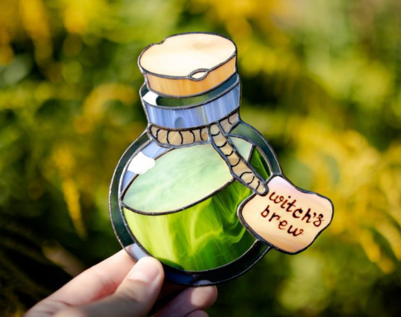 Color: witch, scarecrow, diamond, blue bottle, green bottle, red bottle