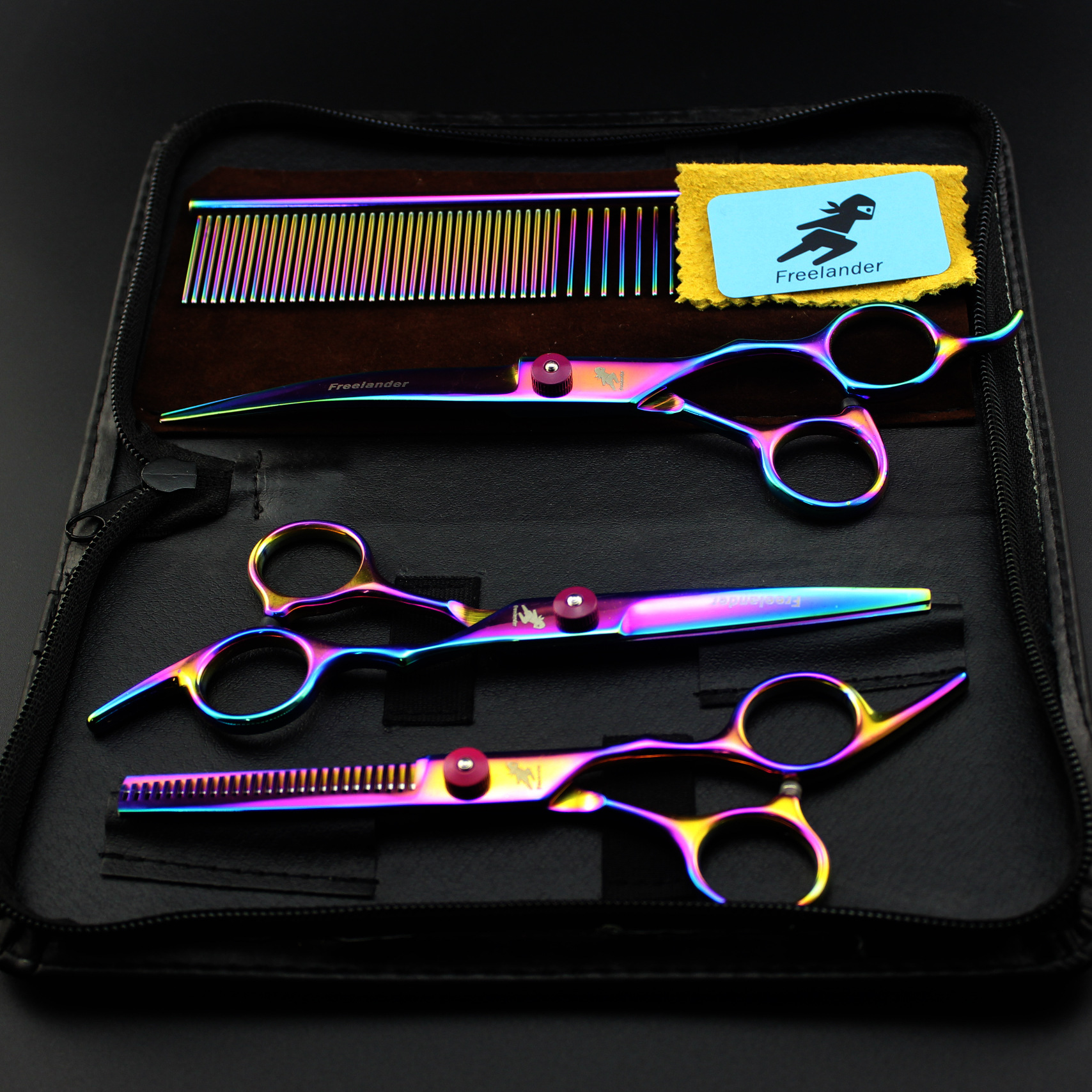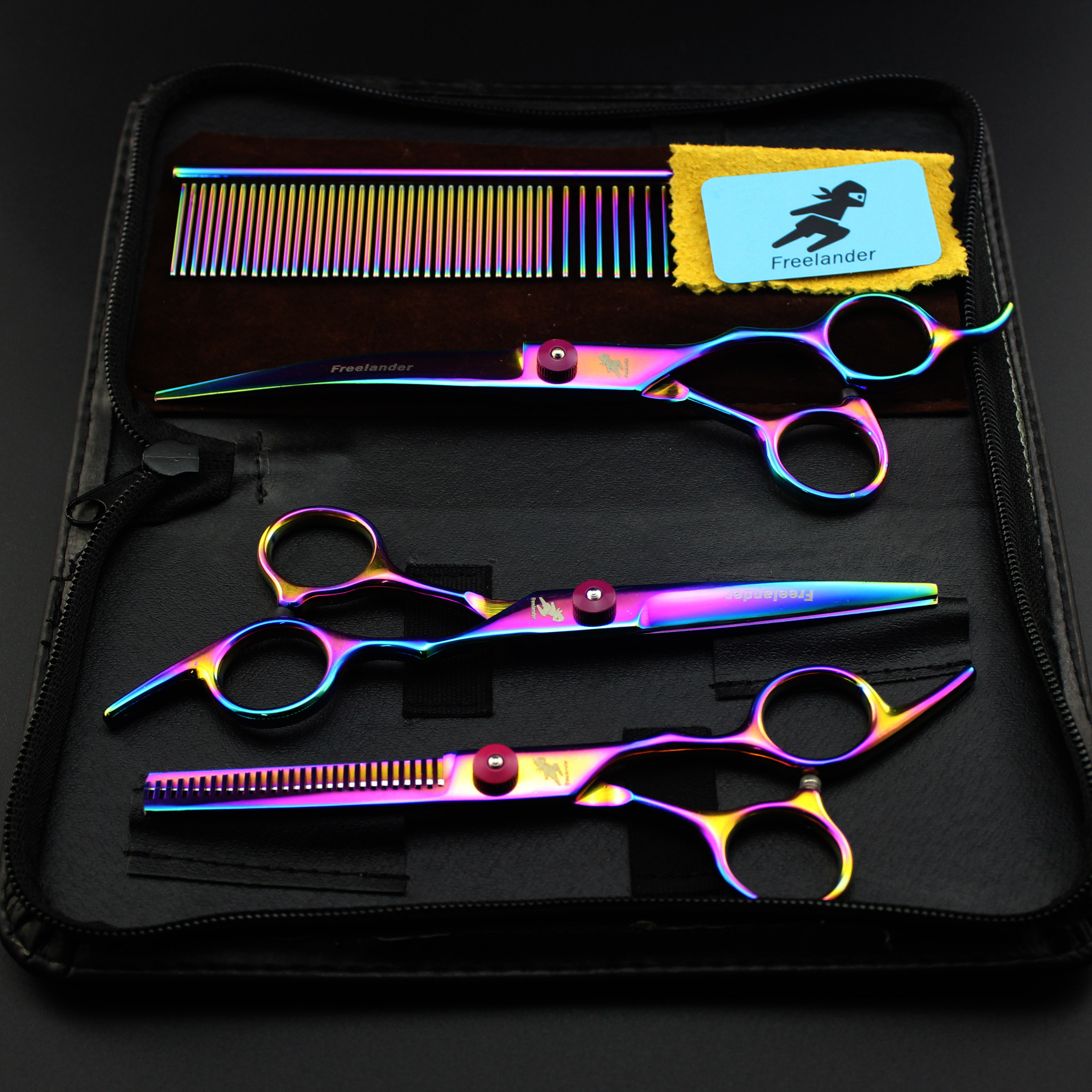 Colorful scissors 3-piece set+bag+comb
