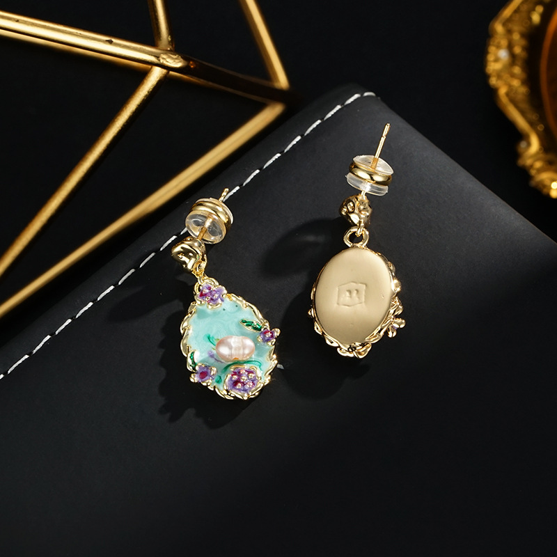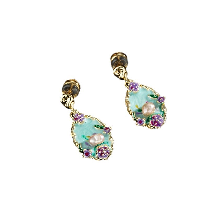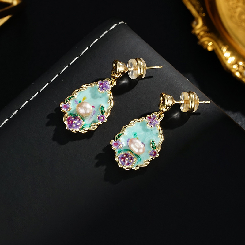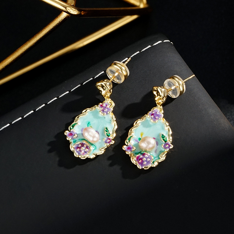 Colorful Fashion Retro Oil Painting Style New Chinese Style Earrings