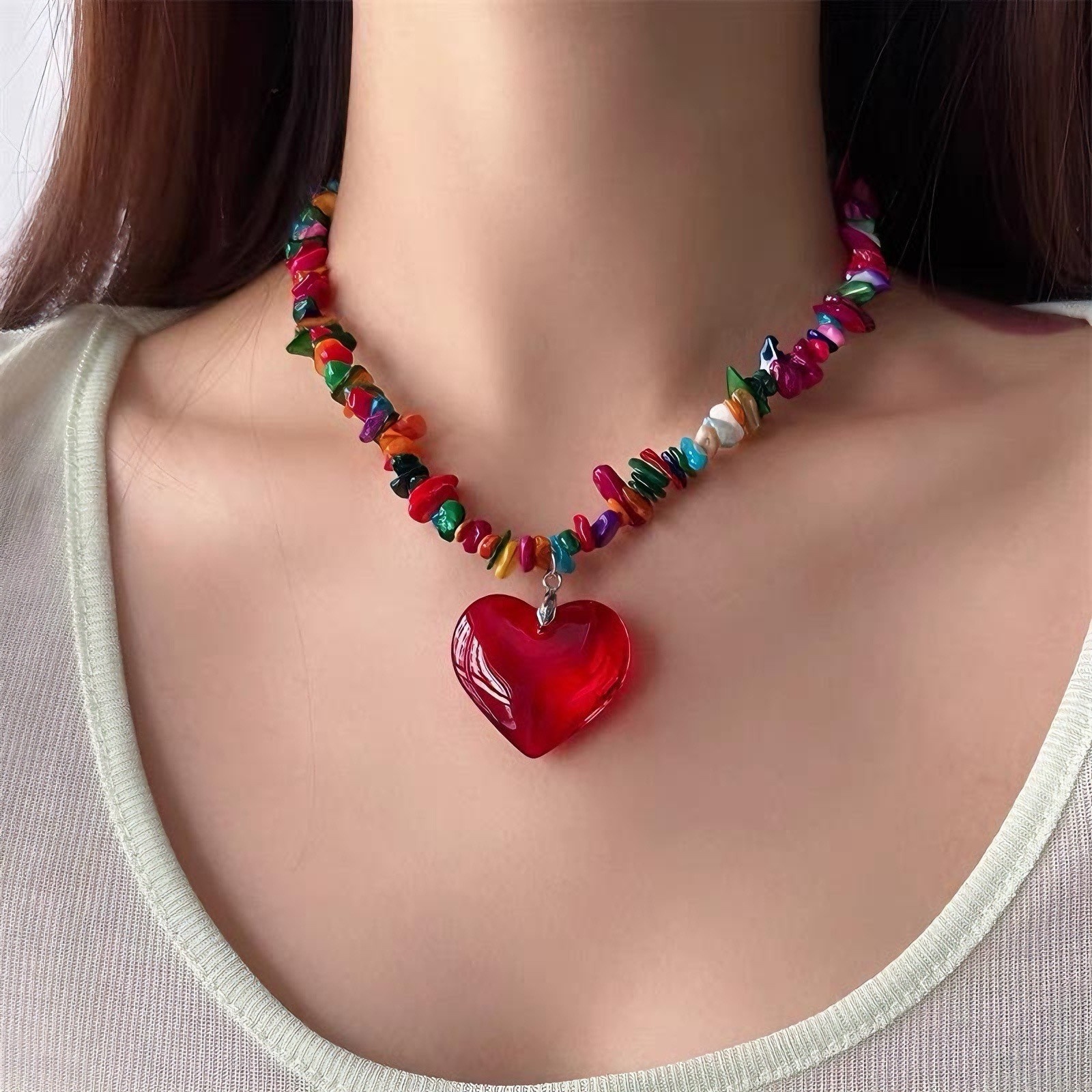 Color: Color gravel necklace-DX0723