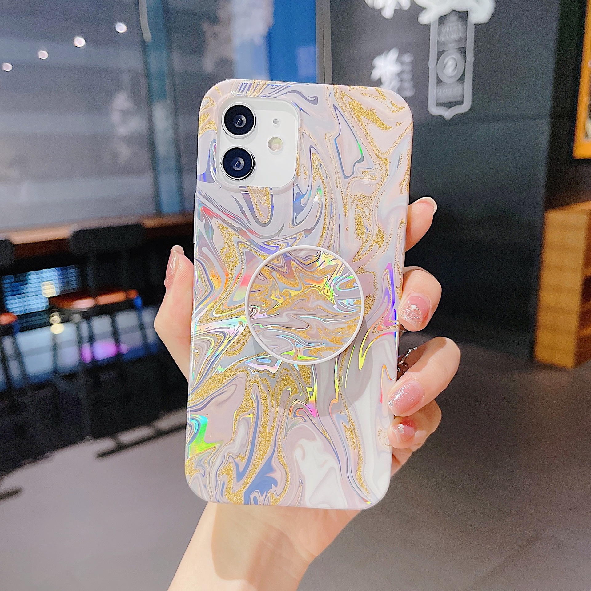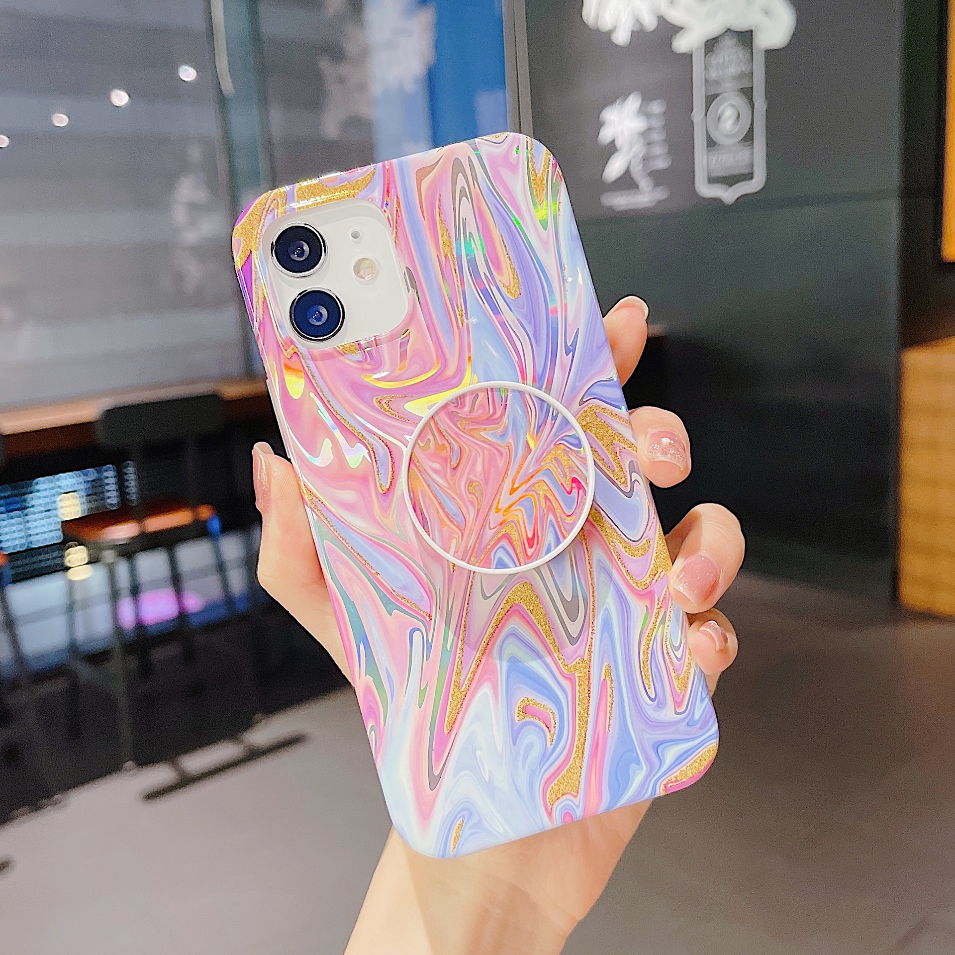 Colorful Laser And Flash Powder With The Same Bracket Phone Case