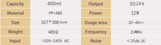 Function: humidifyingApplicable target: householdApplicable area: 10-20 square metersWater tank capacity is less than 1 liter