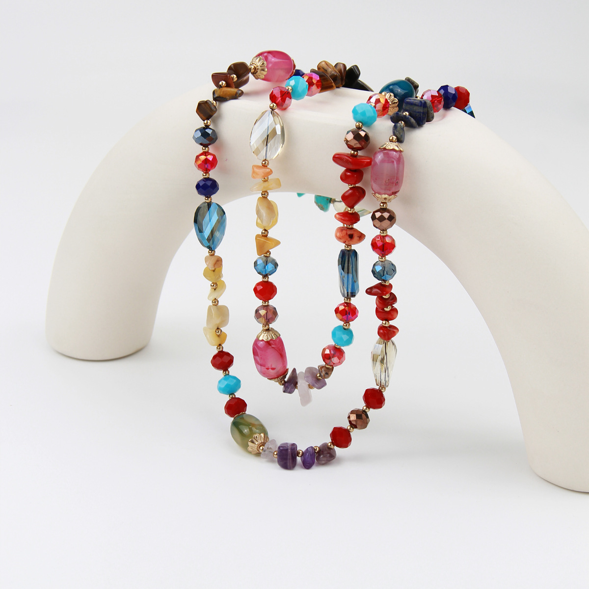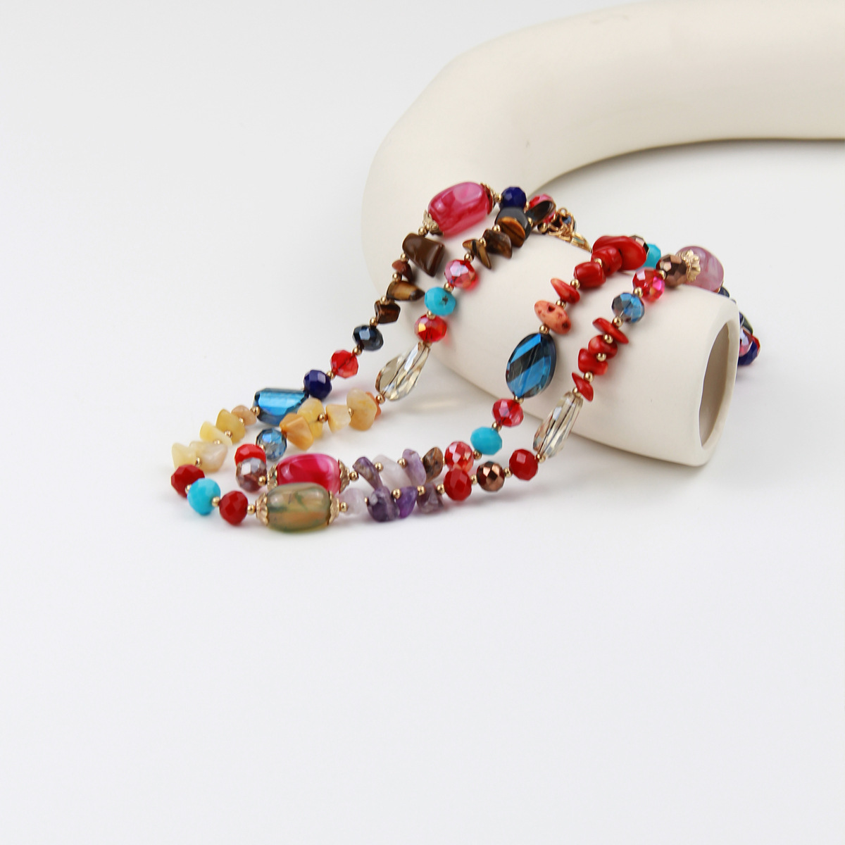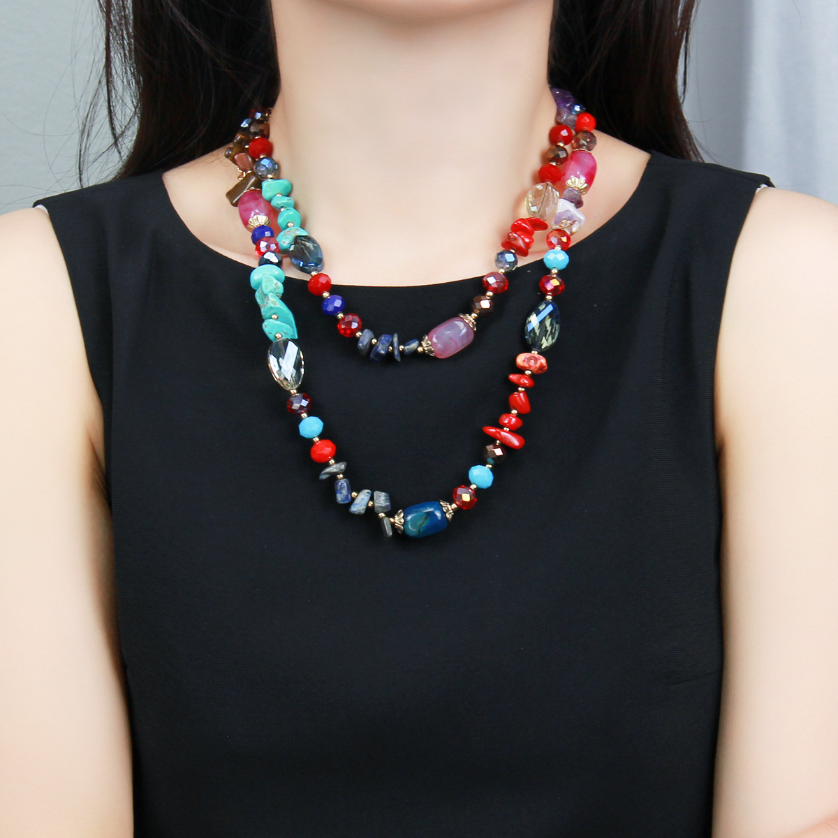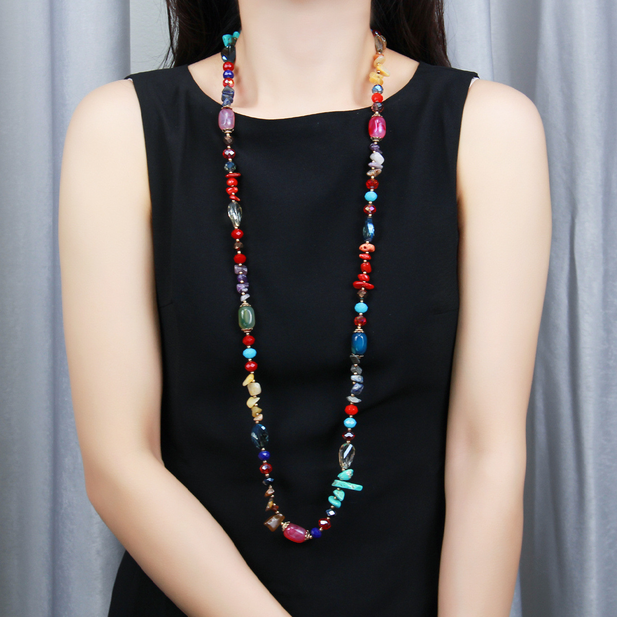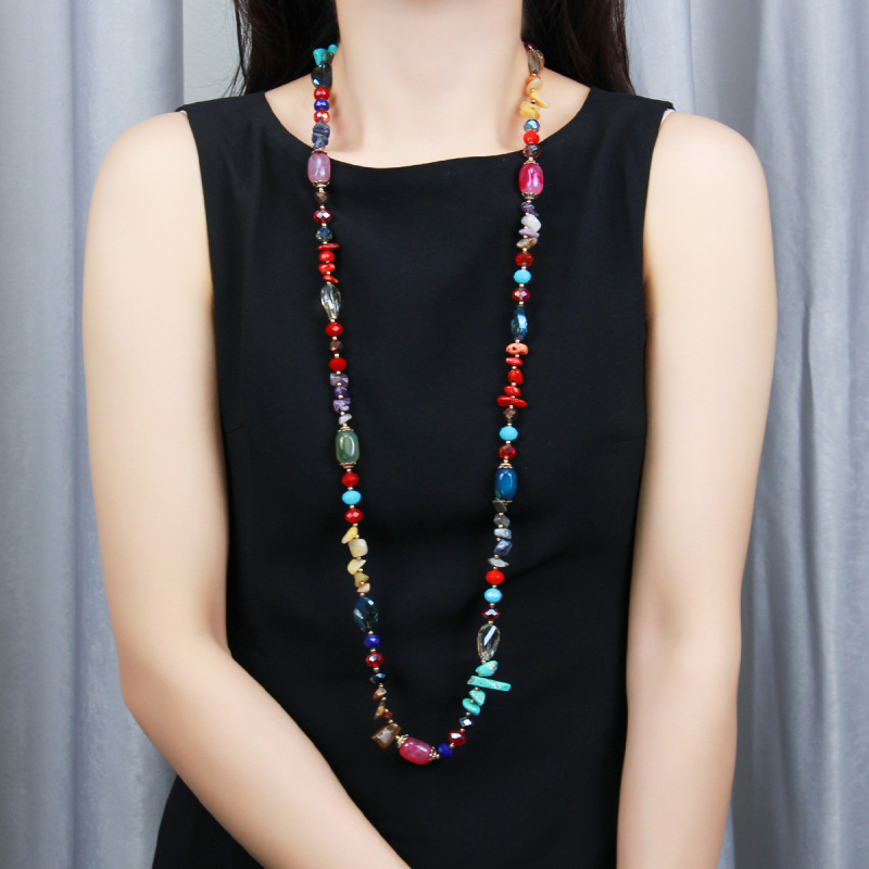 Color: colorful natural agate Crystal string beads long necklace, support customization