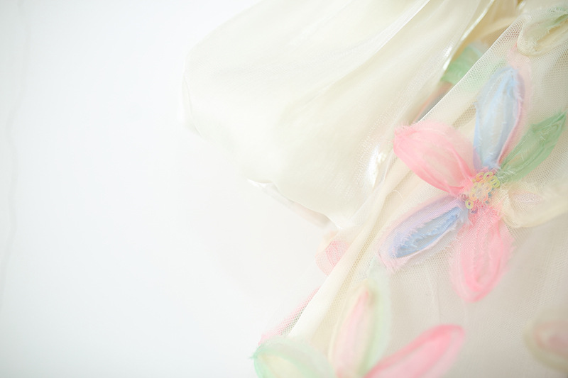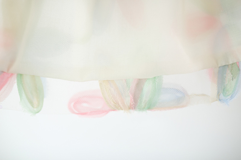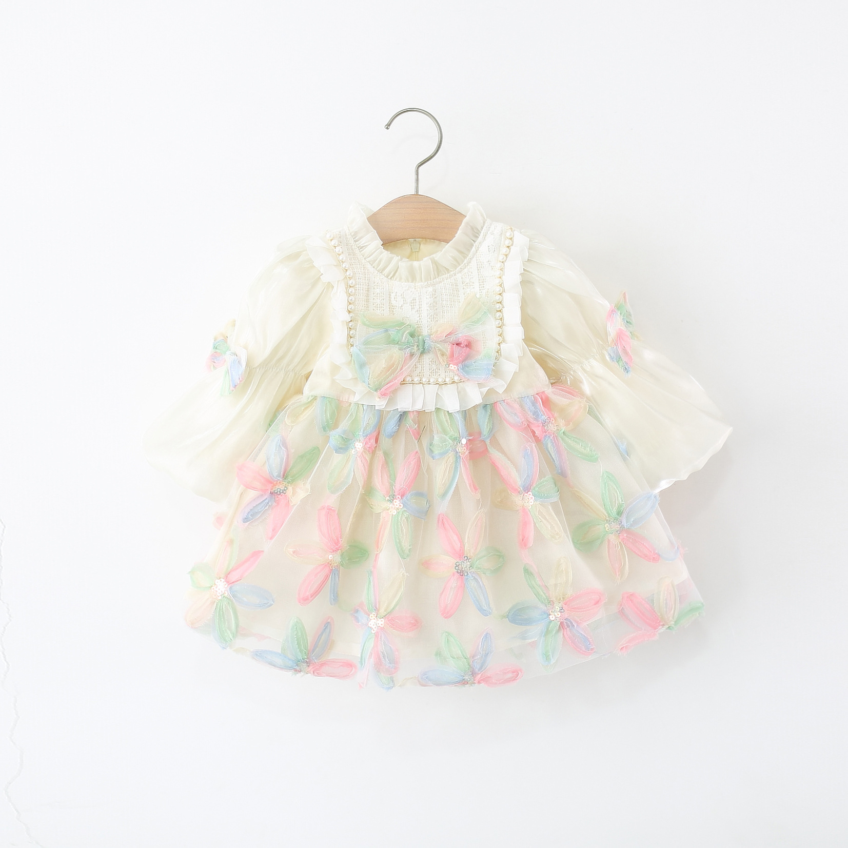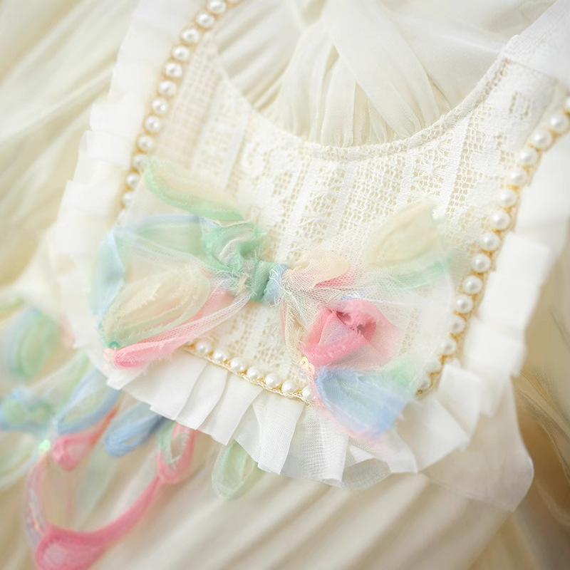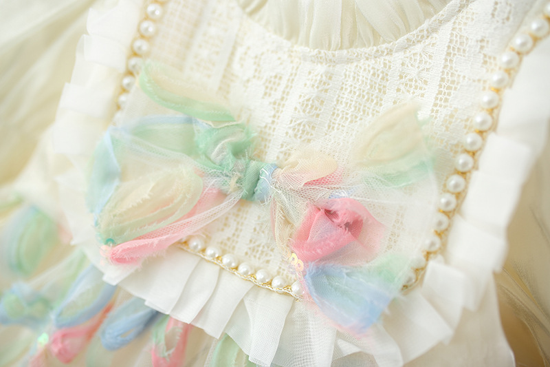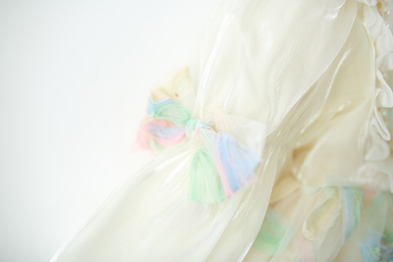 Colorful Petal Mesh Gauze Skirt Girls Bow-Knot Long-Sleeve Dress