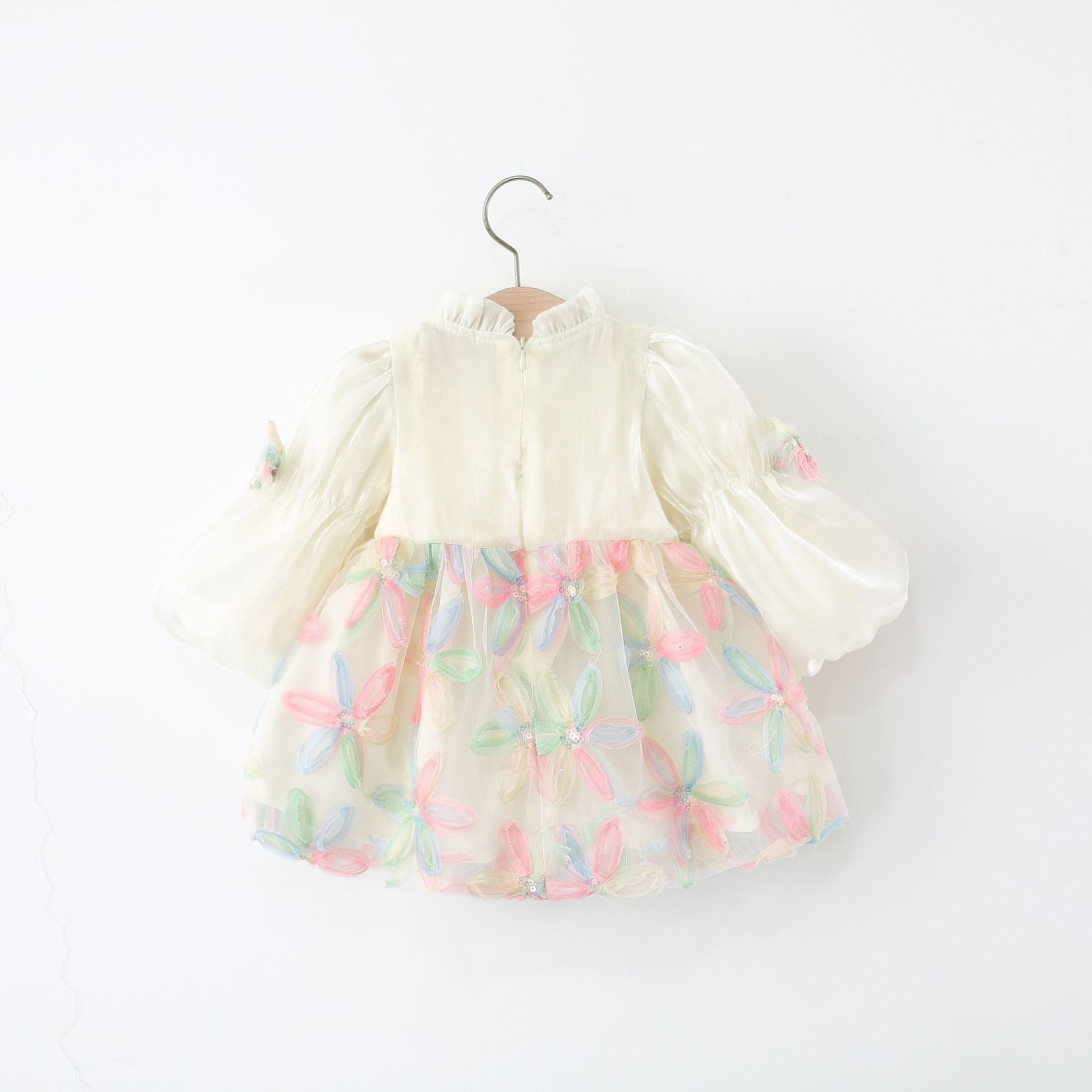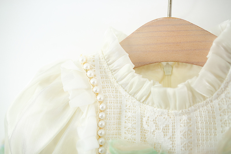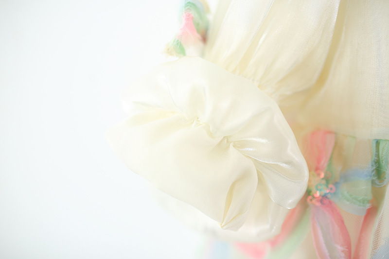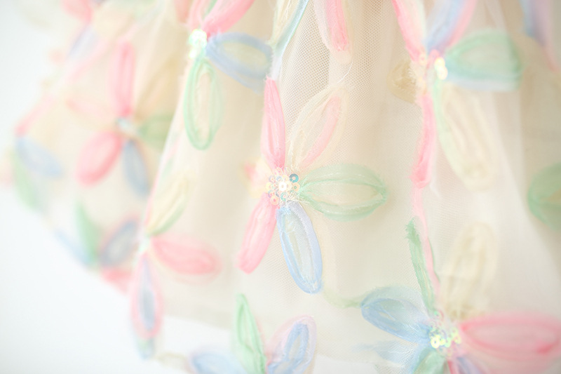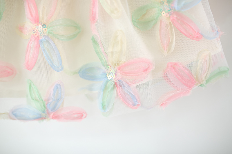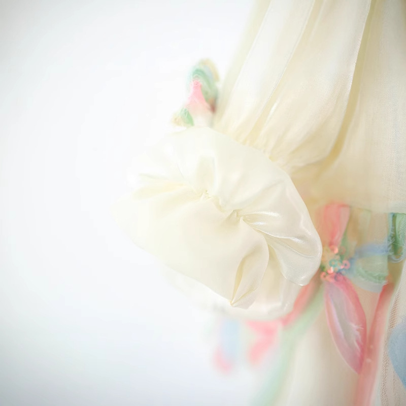 Colorful Petal Mesh Gauze Skirt Girls Bow-Knot Long-Sleeve Dress