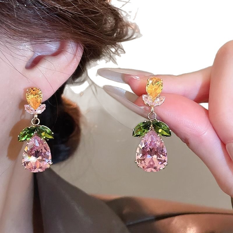 Colorful Sparkling Diamond Flower Leaf Water Drop Pendant Necklace Earring Set