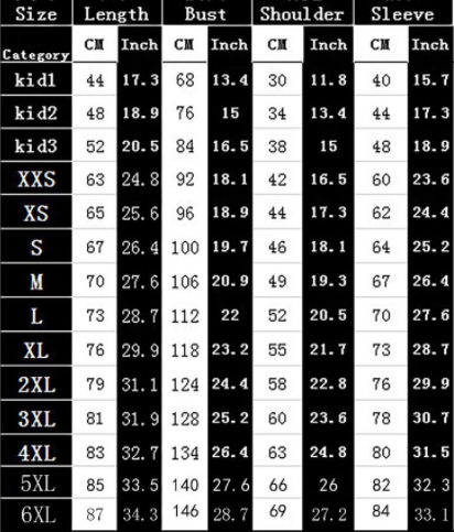 Size: 2XS,XS,S,M,L,XL,2XL,3XL,4XL,5XL
